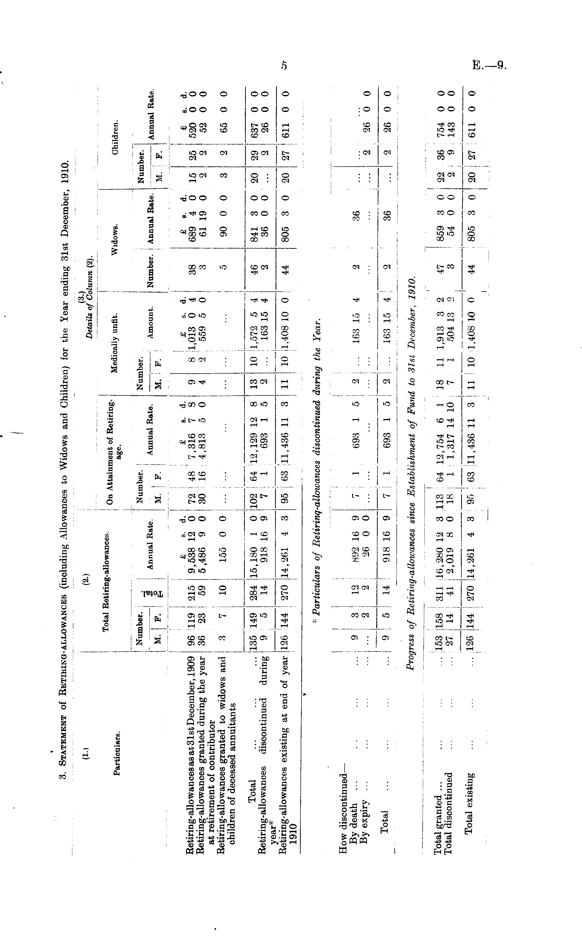 3. Statement of Retiring-allowances (including Allowances to Widows and Children) for the Year ending 31st December, 1910.
