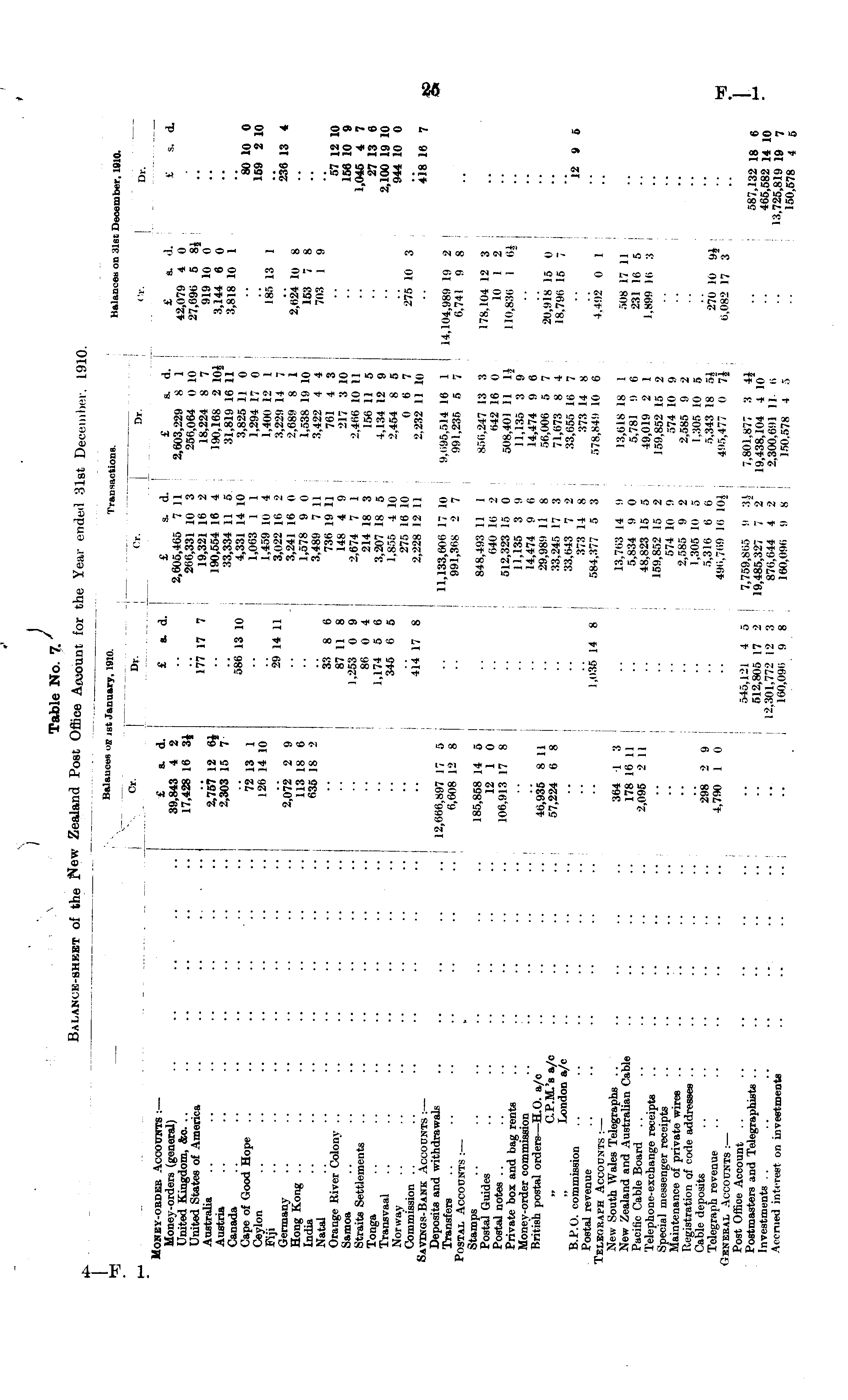 Table No. 7. Balance-sheet of the New Zealand Post Office Account for the Year ended 31st December, 1910.