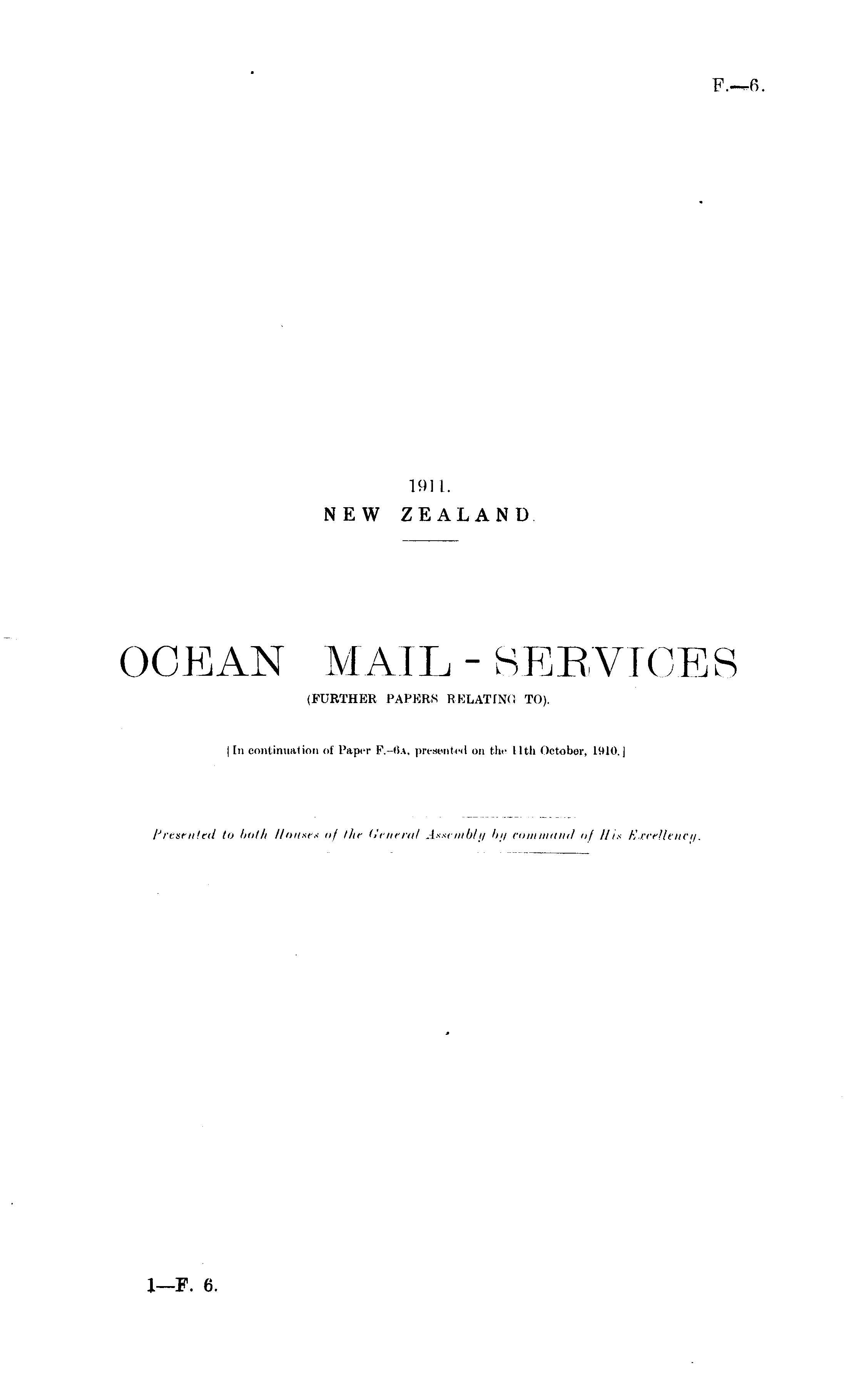 OCEAN MAIL-SERVICES (FURTHER PAPERS RELATING TO). [In continuation of Paper F.-6a, presented on the 11th October, 1910.]