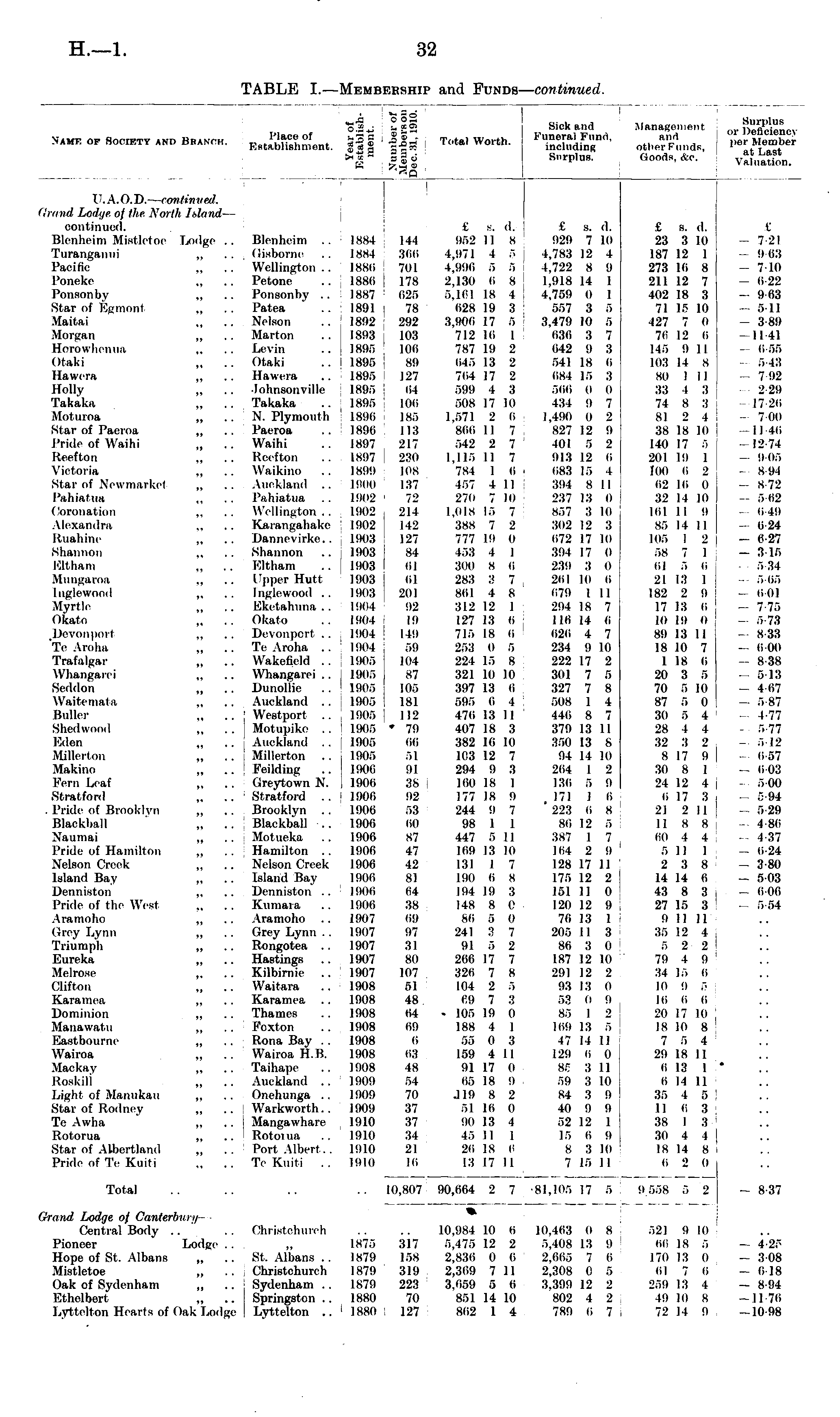 i ooS *r~ . s. d Sick and >>"- = jti Sin-phis. - L Management and " otlu'i" Funds, ' Hoods, ice. Management and other Funds, Hoods, ice. Surplus or I leflcien per Memb at Last Valuatioi Surplus or I tencienc) per Member at Last Valuation. O.A.O.D.—continued. 'iruiiil Lodge of (he North Ibland continued. £ B. d. € B. d. Blenheim Mistletoe Lodge .. Blenheim .. 1884 III 952 II 8 929 7 10 Turanganui .. .. Gisborne .. ISS4 366 4,971 4 5 4.7s:i 12 I Pacific .. .. Wellington.. 1888 701 1,996 5 5 4.722 8 8 Poneke .. .. Petone .. 1886 178 2,130 6 8 1,918 14 I Ponsonby .. .. Ponsonby .. 1887 626 5,16] is 4 4,75!) 0 I Star of Egmoni ., .. Patea .. 189] 78 628 I!) 3 567 3 5 Maitai ., .. Nelson .. 1892 292 3,906 17 ."> 3,479 10 S Morgan „ .. Marton .. 1893 103 712 Iβ I 636 :! 7 Eorowhonua „ .. Levin .. 1896 106 787 19 2 642 9 :s Otaki „ .. Otaki .. 1896 89 646 13 2 54] 18 6 Hawera „ .. Eawera .. 1895 127 7(i4 17 2 r.sl 15 :s Holly „ .. Johnaonville 1895 i>4 r>99 4 :l 566 0 0 Takaka .. .. Takaka .. 1896 106 508 17 10 434 9 7 Mntiiroa „ .. N. Plymouth 1896 186 l,. r >71 2 li 1,490 0 2 Star of Faeroa „ .. Paeroa .. 1896 113 sue, 11 7 827 12 9 Pride of Waihi „ .. Waihi .. 1897 217 542 2 7 4(il 5 2 Reefton „ .. Reefton .. 1897 230 1,115 II 7 913 12 6 Viotoria .. .. Waikino .. 1899 108 784 I (i i (is. , ! 15 I Star of Newmarkel „ .. Auokland .. 1900 137 4r>7 4 II i 394 8 II Pahiatua „ .. I'ahiatua .. 1902 72 270 7 10 237 13 0 Coronation .. .. Wellington.. 1902 214 1,018 15 7 857 :i 10 Alexandra .. .. Karangahake 1902 142 388 7 2 302 12 3 Ruahine „ .. Dannevirke.. 1903 127 777 19 0 672 17 10 Shannon „ .. Shannon .. 1903 84 453 4 I 394 17 0 Kltham .. .. Eltham .. 1903 61 300 8 6 239 3 0 Mungaron ., .. Upper Hutl 1903 ill 283 3 7 26] 10 t> Inglewood .. .. Inglewood .. 1903 201 Slil 4 8 ii7() I II Myrtle „ .. Kkctahnna .. 1904 92 312 12 I 294 18 7 Okato .. .. Okato .. IU04 lit 127 18 6 116 14 ti Devonport Devonpori .. I'.K)4 149 715 Is B 62(1 4 7 Te Aroha ., .. Tβ Aroha .. 1904 59 253 0 5 234 9 lo Trafalgar „ .. Wakefield .. 1905 104 224 15 8 222 17 2 Whangarei .. .. Whangarei.. 1906 s~ 321 lo lo 301 7 5 Seddon „ .. DunolLe .. 1906 105 397 13 6 327 7 8 Waitemata .. .. Auokland .. 1906 IS1 596 6 ) 508 I 4 Buller .. .. ' Westporl .. 1905 112 47(> 13 II 146 8 7 Shedwood .. .. Motupiko .. 1905 ' 79 407 is 3 379 13 II Eden iuokknd .. 1905 66 382 Iβ 10 350 13 8 Millerton „ .. Millerton .. 1905 51 103 12 7 94 14 10 Makinc „ .. Feilding .. 1906 9] 294 9 :! 264 1 2 Fern Leaf ,. .. Greytown N. 1906 38 160 18 I 136 5 !) Stratford „ .. Stratford .. 1906 92 177 18 !l 171 1 6 Pride of Brooklyn Brooklyn .. 1906 53 244 !) 7 223 6 s Blacklnll „ .. Blackball .. 1906 60 98 I I 86 12 5 Nanmai „ .. Motueka .. l!)0(> 87 447 f> II 387 I 7 Pride of Hamilton „ .. Hamilton .. 1906 47 169 13 10 164 2 9 Nelson Creek „ .. Nelson Creek 1906 42 I :i I I 7 12S 17 I ] Island Bay „ .. Island Bay 1906 8] 190 6 8 175 12 2 Denniston .. .. Denniston .. 1906 fi4 194 19 :( 151 II 0 Pride of the Wesi .. .. Kumaia .. 1906 38 148 8 0 120 12 9 Aram,,In. Wamoho .. 1907 69 86 5 0 76 13 I Grey Lynn .. .. Grey Lynn.. 1907 97 241 3 7 206 II 3 Triumph .. .. Rongotea .. 1907 31 9] r> 2 86 3 0 Eureka „ .. Hastings .. 1907 80 266 17 7 187 12 10 Melrose „ .. Kilbirnie .. 1907 107 326 7 8 291 12 2 Clifton „ .. Waitara .. 1908 f>1 104 2 5 93 13 0 Karamea „ .. Karamca .. 1908 48 Hi 7 3 53 0 9 Dominion „ .. Thames .. 1908 i>4 - lor> 19 0 85 I 2 Manawatu „ .. Foxton .. 1908 69 188 4 I 169 13 5 Eastbourne „ .. Rona Bay .. 1908 (i 55 0 3 47 14 11 Waiioa „ .. WairoaH.B. 1908 63 159 4 11 [29 8 0 Maokay „ .. Taihape .. 1908 48 91 17 0 86 3 II Roskill „ .. Auckland .. 1909 54 66 Is 9 59 3 10 Light of Mamikau „ .. Onchiinga .. 1909 70 .119 S 2 S4 3 !l Star of Rodney „ .. Warkworth.. I!H)9 37 51 Iβ 0 40 !) 9 Te Awha „ .. Mangawhare 1910 37 90 13 4 r>2 12 1 Rotorua „ .. Rotoma .. 1910 34 4."> II I 15 l> 9 Star of Albert land „ .. Port Albert.. [910 21 26 IS 6 8 3 10 Pride of Te Kuiti .. .. Te Kuiti .. 1910 16 13 17 II 7 15 II e e. (i. 23 3 10 IS7 12 I 273 16 8 211 12 7 402 18 :i 71 16 in 127 7 0 76 12 ii 145 9 II 103 14 8 80 I I I 33 I 3 74 8 3 81 2 4 38 18 lo 140 17 6 201 19 1 Hid 6 2 l>2 Iβ 0 :(2 II Hi 161 II 9 85 11 11 105 I 2 58 7 I til 5 li 21 13 1 IS2 2 9 17 13 (i 111 111 0 89 13 II 18 10 7 1 IS li 20 3 5 70 5 in 87 5 li 30 5 4 28 I 1 32 3 2 5 17 9 I 30 8 I 24 12 4 i 6 17 3 I 21 2 11 II 8 8 (ill 4 4 5 11 1 2 3 8 14 14 l> 43 8 3 27 16 3 9 II II 36 12 4 g 2 2 79 I 9 34 15 ii 10 9 5 it; 6 ii 20 17 10 15 II) 8 7 5 4 29 is II 6 13 I ' ii II II 35 I 5 1 1 6 3 38 I 3 30 4 I ; IS 14 8 6 2 ii £ 7 21 9-63 7 Id B-22 963 6 11 3-89 11 41 i; ,v> 5-43 7! 12 2 29 17 2li 700 I Ml' 12 74 905 8-94 8-72 562 1 1 in - (i-24 - 6-27 - 3-U> 5 34 5(15 B0] 7 75 5-73 8-33 ii HO 8 38 513 I 117 5-87 I 77 5-77 .. 12 6-57 603 500 594 5 2!) 4-86 I 37 ii 21 - 3-80 603 fl 06 5 54 Total .. .. .. .. 10,807 90,664 2 7 81,105 IT 5 9 55S 6 2 - 8-37 Trand Lodge of Canterbury Central Body .. .. Christohnroh .. .. 10.984 10 t> 10,463 0 s Pioneer Lodge.. „ 1875 317 5,476 12 2 5,408 13 9 Hope of St. Albans „ .. St. Albans.. 1879 158 2,836 0 6 2,665 7 l> .Mistletoe „ .. Christohurch IS79 319 2,309 7 11 2,308 0 5 Oak of Sydenham „ .. Sydenham .. IS79 223 3,669 6 6 3,399 12 2 Ethelbert „ .. Springston .. 1880 70 851 14 lo 802 4 2 Lyttelton Hearts of Oak Lodge Lyttelton .. ' 1880 I 127 si>2 I 4 789 i> 7 I 52] 9 10 6fl is 5 170 13 ii lil 7 i> 269 13 4 til III S 72 14 9 - 4-2;- - 308 - 6-18 - 8-94 -11-76 - 10-08