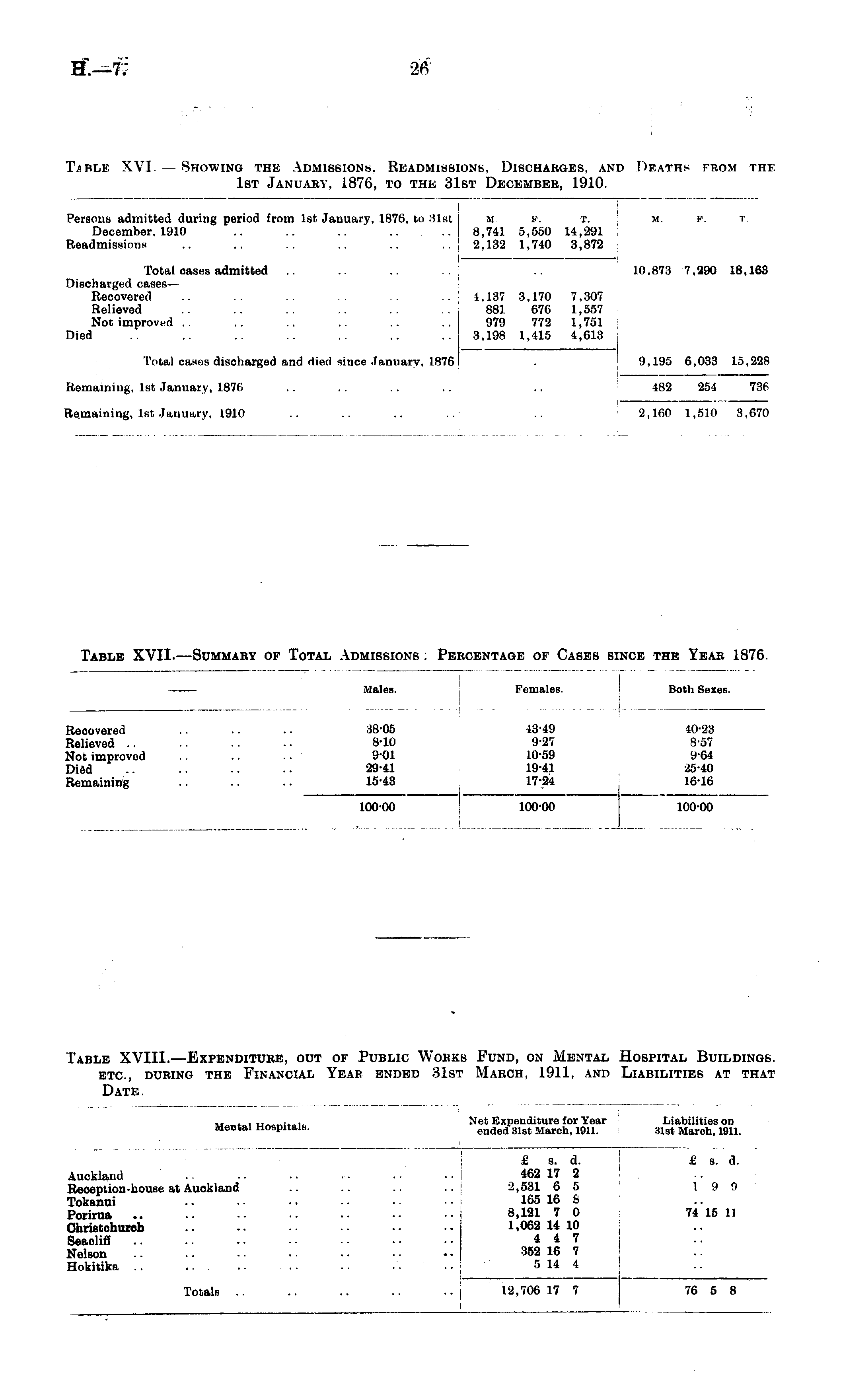 Table XVI.—Showing the Admissions, Readmissions, Discharges, and Deaths from the 1st January, 1876, to the 31st December, 1910.