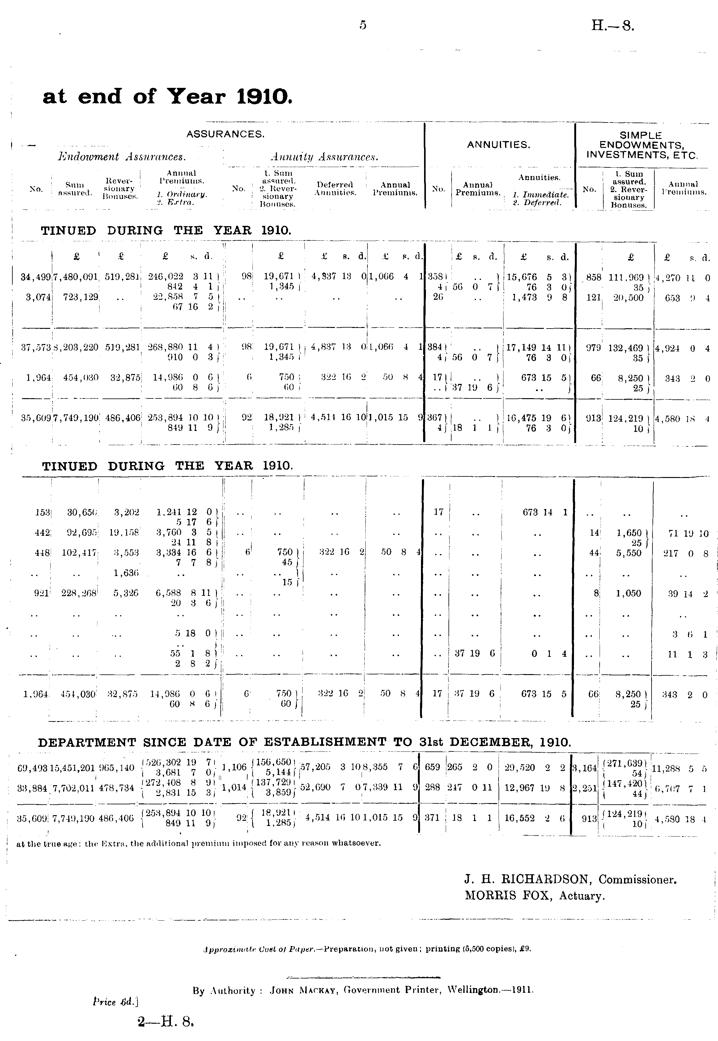 J. H. EICHAEDSON, Commissioner. MOREIS FOX, Actuary.