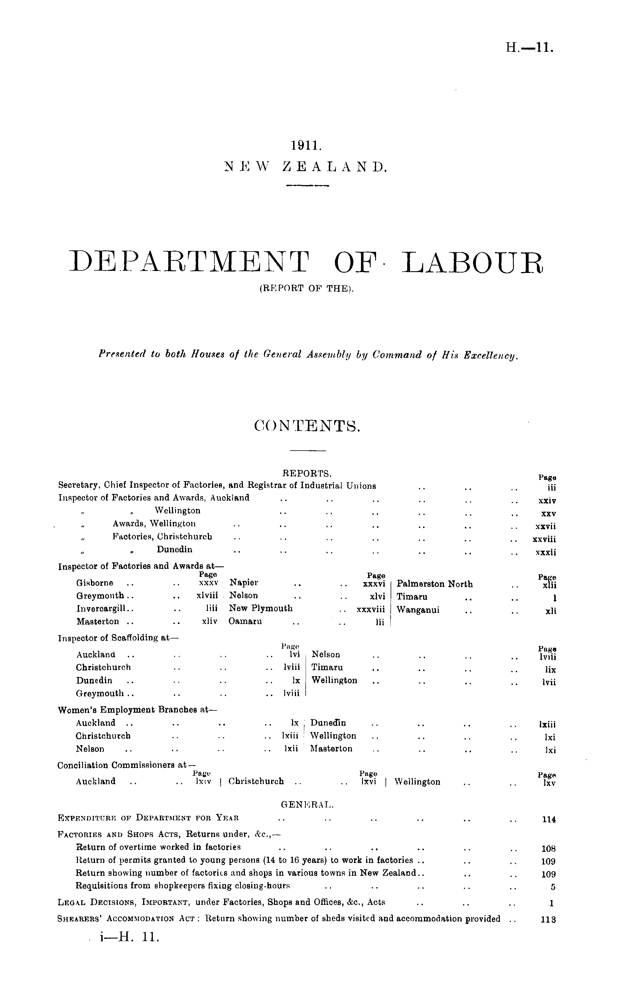 CONTENTS. REPORTS. Paga Secretary, Chief Inspector of Factories, and Registrar of Industrial Unions .. .. iij Inspector of Factories and Awards, Auokland .. .. .. .. ~ xx j v Wellington .. .. ~ ~ _ xxv Awards, Wellington .. .. .. ~ .. _. xxvii Factories, Christchurch .. .. .. ~ .. xxviii Dunedin .. .. .. .. .. .. xxxii Inspector of Factories and Awards at— Page xt Pa « e Page Gisborne .. .. xxxv Napier .. .. xxxvi Palmerston North .. xlii Greymouth.. .. xlviii Nelson .. xlvi Timaru .. .. 1 Invercargill.. .. liii New Plymouth .. xxxviii Wanganui .. .. xli Masterton .. .. xliv Oamaru .. .. Hi Inspector of Scaffolding at— Page Pag» Auckland .. .. .. .. lvi Nelson .. .. .. ~ l v ,ij Christchurch .. .. .. lviii Timaru .. .. .. .. li x Dunedin .. .. .. .. lx Wellington .. .. .. .. lyji Greymouth .. .. .. .. lviii Women's Employment Branches at— Auckland .. .. .. lx Dunedin .. .. .. .. ] x jjj Christchurch .. .. .. lxiii Wellington .. .. .. .. ] x j Nelson .. .. .. .. lxii Masterton .. .. .. .. Ixi Conciliation Commissioners at — Page Page Pag« Auckland .. .. Ixiv | Christchurch .. Ixvi | Wellington .. .. lxv GENERAL. EXPENDITURE OF DEPARTMENT FOR Year .. .. .. .. .. .. 114 Factories and Shops Acts, Returns under, &c, — Return of overtime worked in factories .. .. .. .. ~ .. 108 Return of permits granted to young persons (14 to 16 years) to work in factories .. .. .. 109 Return showing number of factories and shops in various towns in New Zealand.. .. .. 109 Requisitions from shopkeepers fixing closing-hours .. .. .. .. .. 5 Legal Decisions, Important, under Factories, Shops and Offices, &c, Aots .. .. .. 1 Shearers' Accommodation Act: Return showing number of sheds visited and accommodation provided .. 113