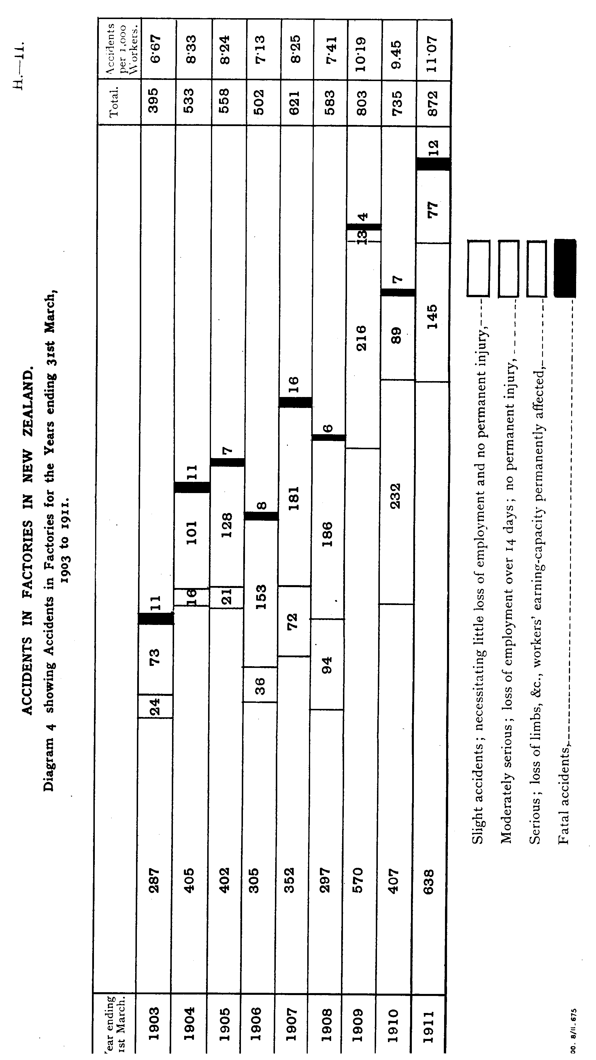 ACCIDENTS IN FACTORIES IN NEW ZEALAND. Diagram 4 showing Accidents in Factories for the Years ending 31st March, 1903 to 191 1.