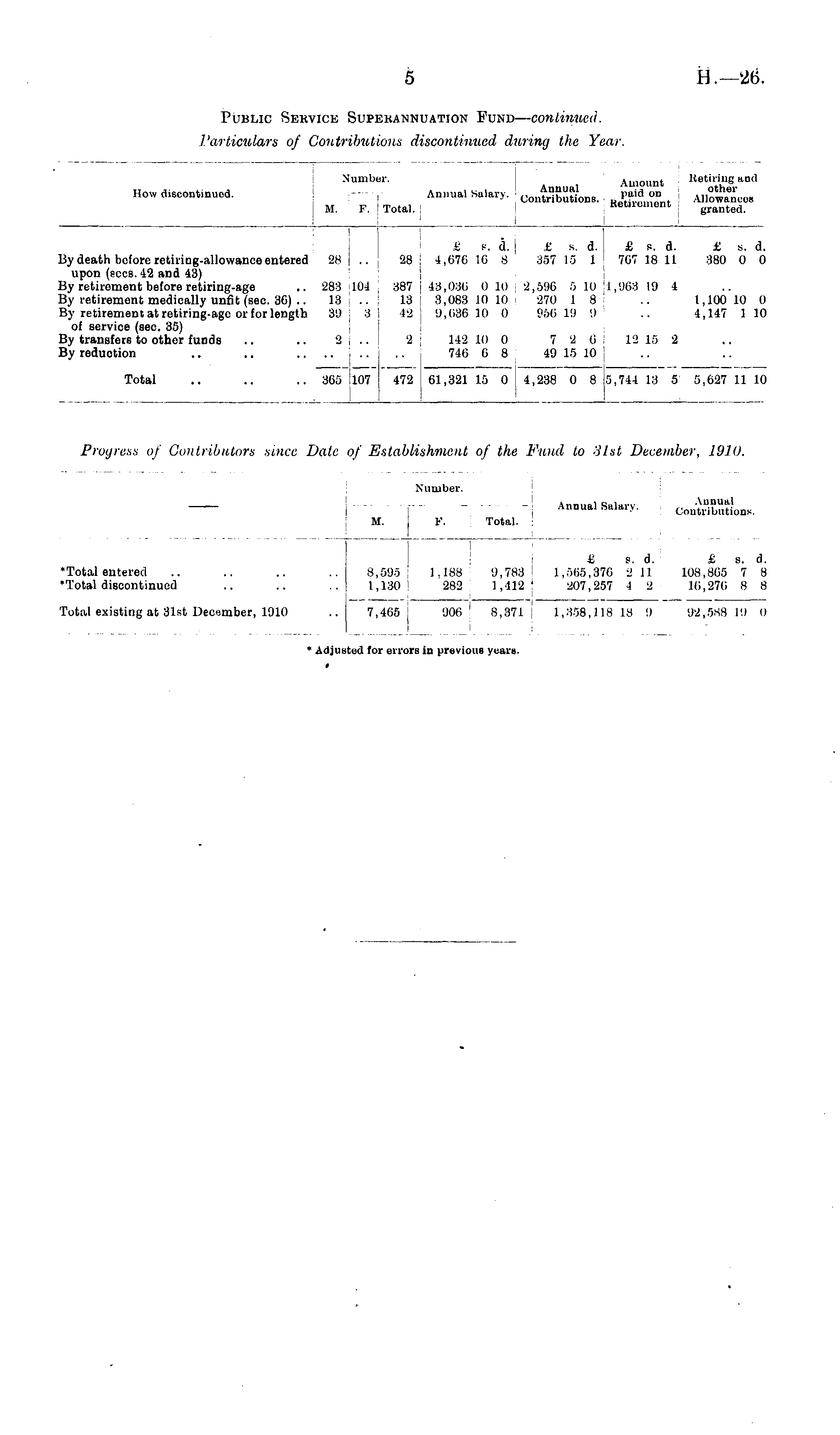 Public Service Superannuation Fund — continued. Particulars of Contributions discontinued during the Year.