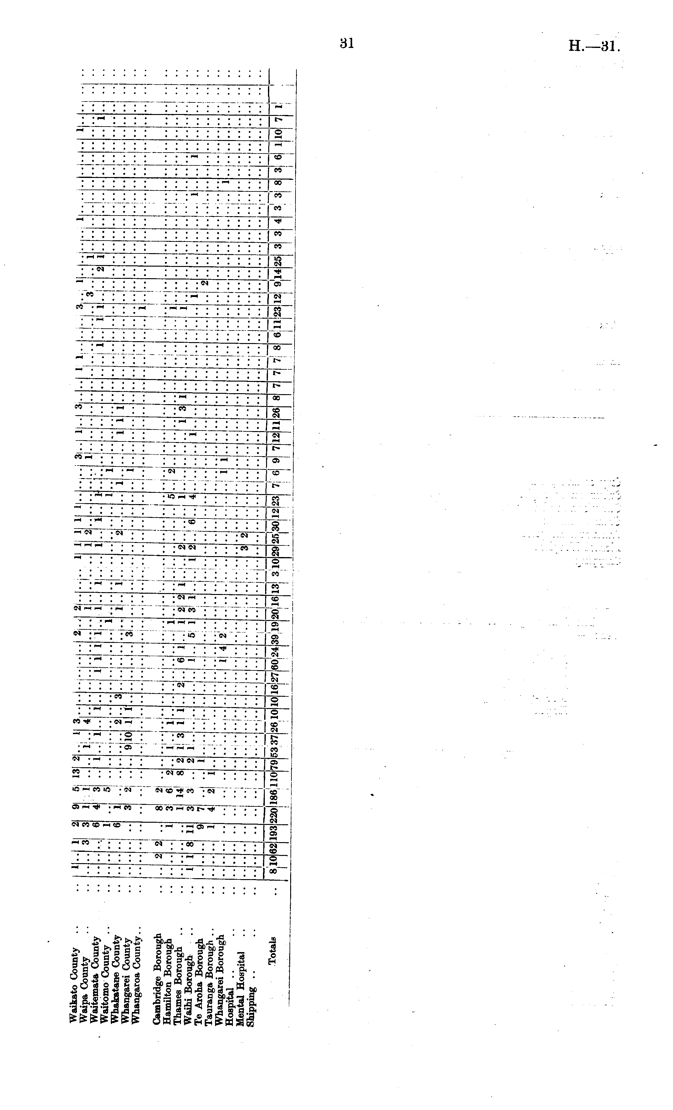 Waikato County Waipa County Waitemata County Waitomo County .. Whakatane County Whangarei County Whangaroa County.. 1 3 2 3 6 1 6 1 4 i 3 ) 5 II I 3 I 5 ,3 ' ** " i .. .. 1 1 .. ••I 1 9l6 3 .. 4.. .. 1 1 1 .... "j 1 i i 2 .. 'ij.'.' .. i 1 1 , i.... I3J 310i i i • - *l i 'I •• "I i l i I.. " i i 1.. '.'. 1 i 1 I •• 2 1 1 i 1 • • ... x l •• ■ • : i 3 1 ■• '2 i I .. I 2j 3!* i "j i • • •• , • - i Cambridge Borough Hamilton Borough Thames Borough .. Waihi Borough Te Aroha Borough Tauranga Borough .. Whangarei Borough Hospital Mental Hospital Shipping .... i 1 " 8 i n 9 1 8 3 1 3 7 4 I 2 I 6 14 ; 3 ' '' 2 \ 2 8 2 2 I 'i:: ! 1 3 1 .. I 1! 1 2 " 6 1 i .. 1 .. 1 5 1 3 2 1 2 2 " fi .*; 1 4 :'/."■ 2 1 *• 3 1 1 I 1 "I" i.. i .... .. .. .. 1 .. :: ;; ;: ' i "i •• i " i" 2 " 7 8 " :: :: :: •■ - ' " *' .... ..... i 4 4 '2:: If i i :: '• i... i " "i" .. •• ■ •• ..I •• "I 1861 " .. 60 24 3919 ■•, 3 2 •• - " " • • •• . -i " ■• " .... 3 6 ** •• j3 3 ;.. Totals 62 l. 53 87. m) H ,30 12 ■• 23 6 i •• H •• 7 ". 23 II 12 " I 14 :•■ 3 _ ... H ... 10 10 193 220! HI 2610 10 16. 12 26 6 it •