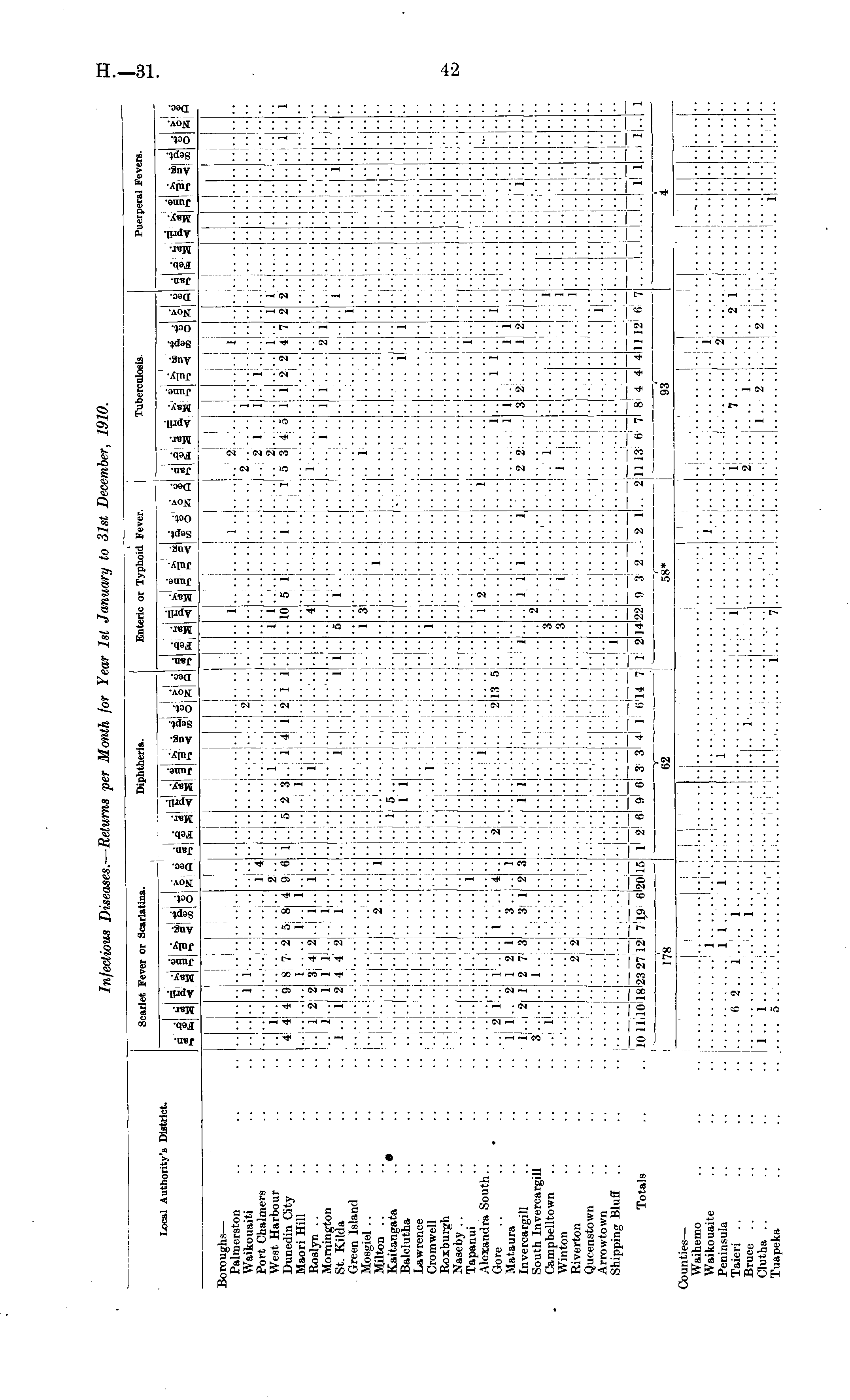 Infectious Diseases. — Returns per Month for Year 1st January to 31st December, 1910.