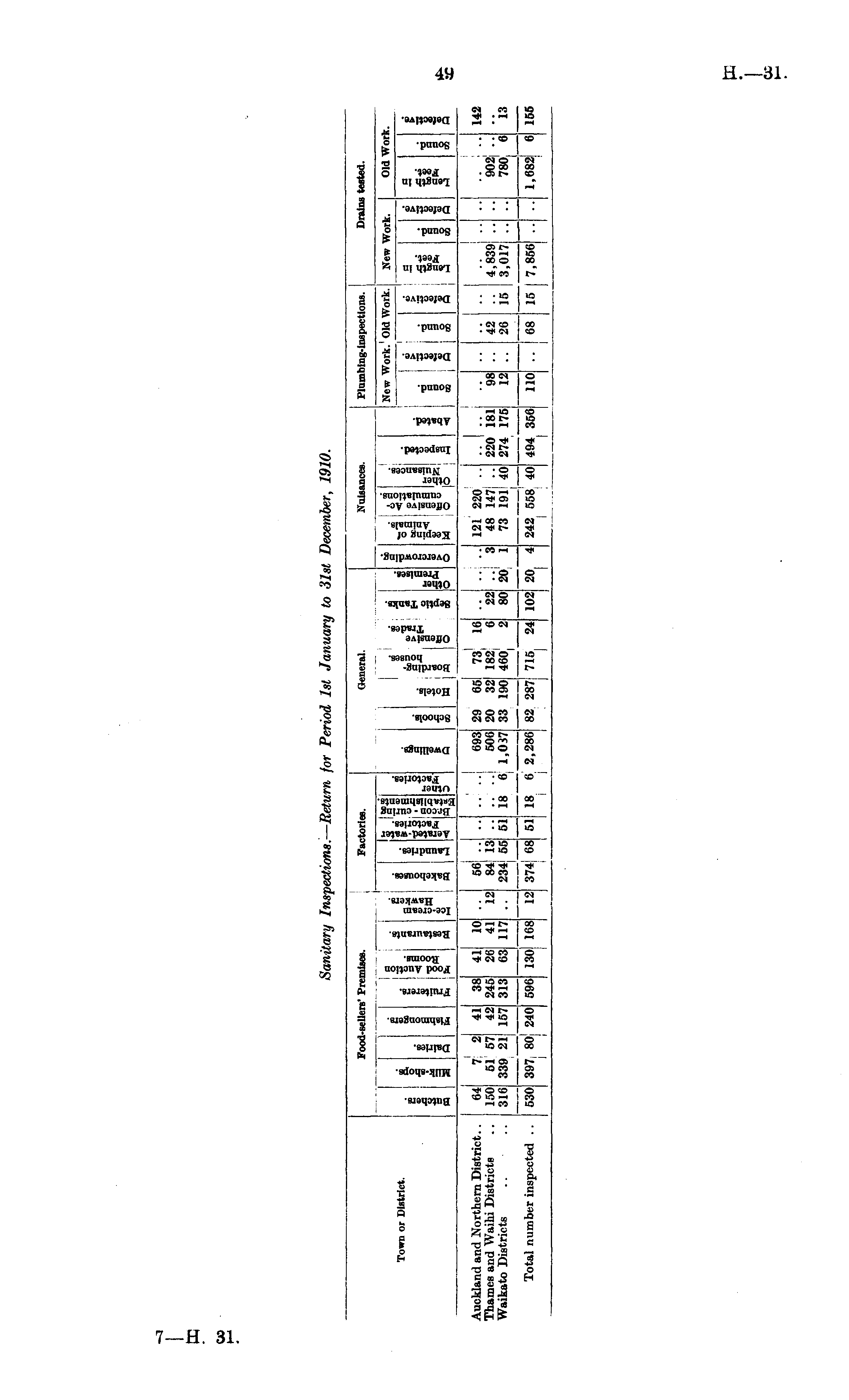 Sanitary Inspections. — Return for Period 1st January to 31st December, 1910.