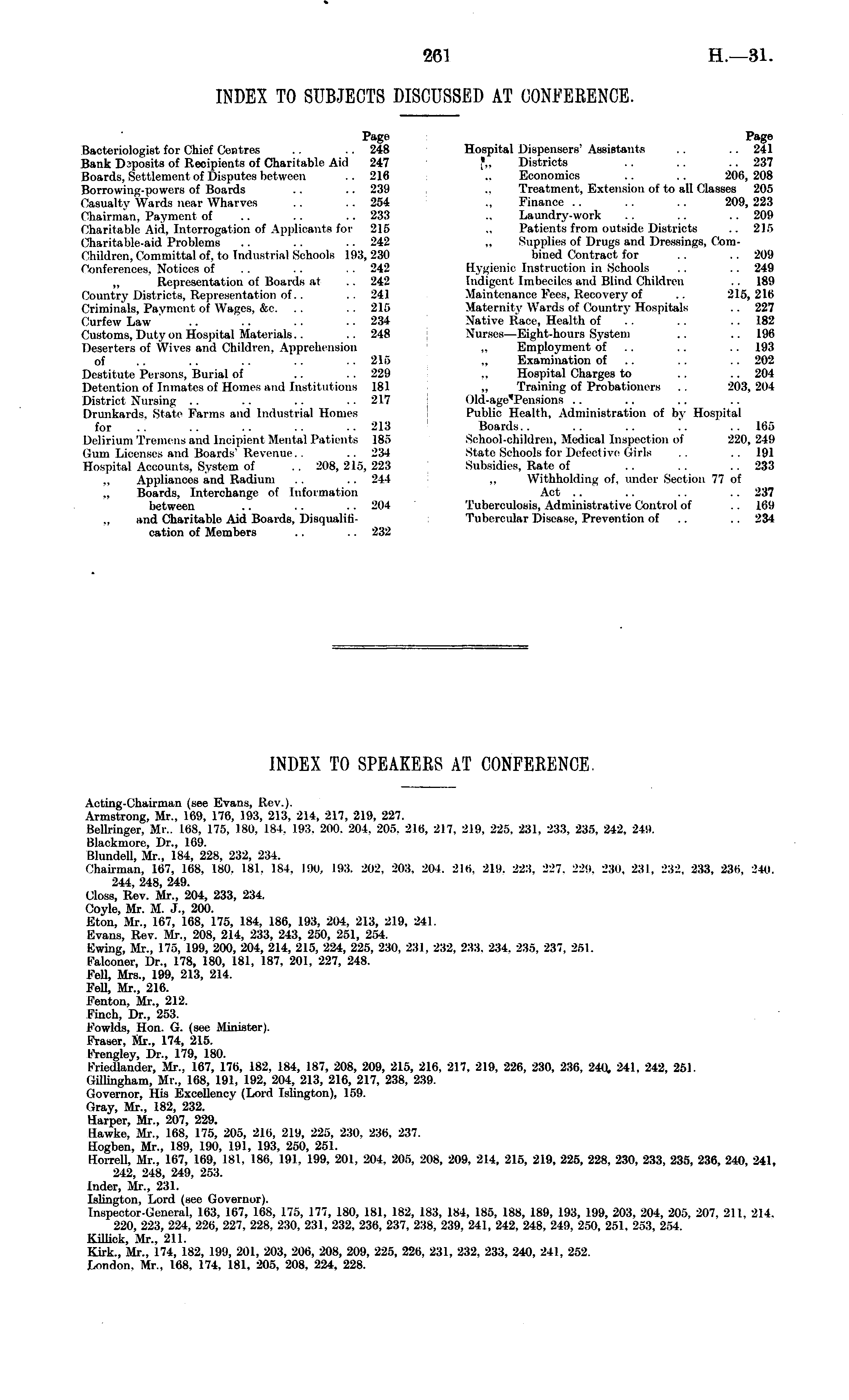 INDEX TO SUBJECTS DISCUSSED AT CONFERENCE.