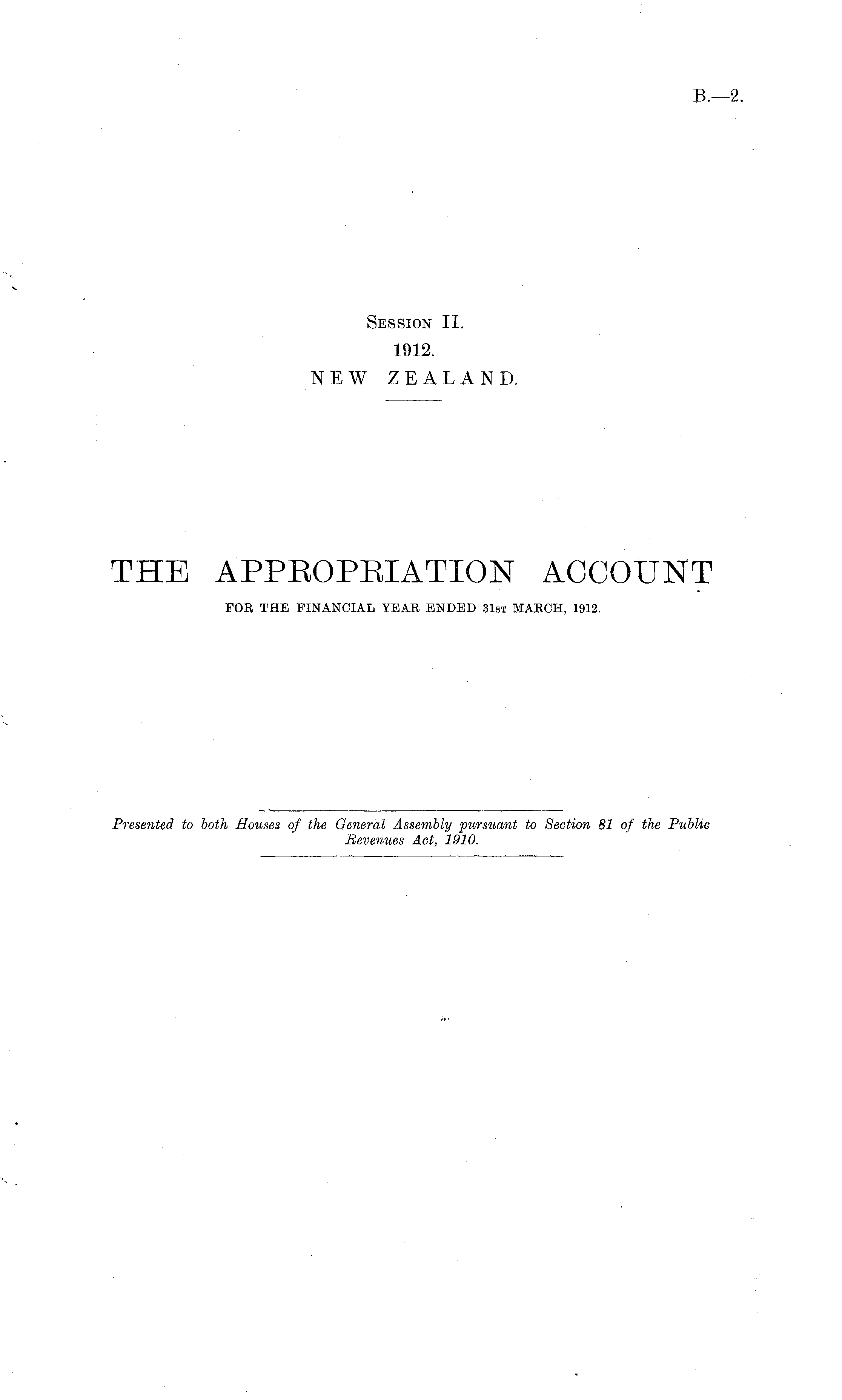 THE APPROPRIATION ACCOUNT FOR THE FINANCIAL YEAR ENDED 31st MARCH, 1912.