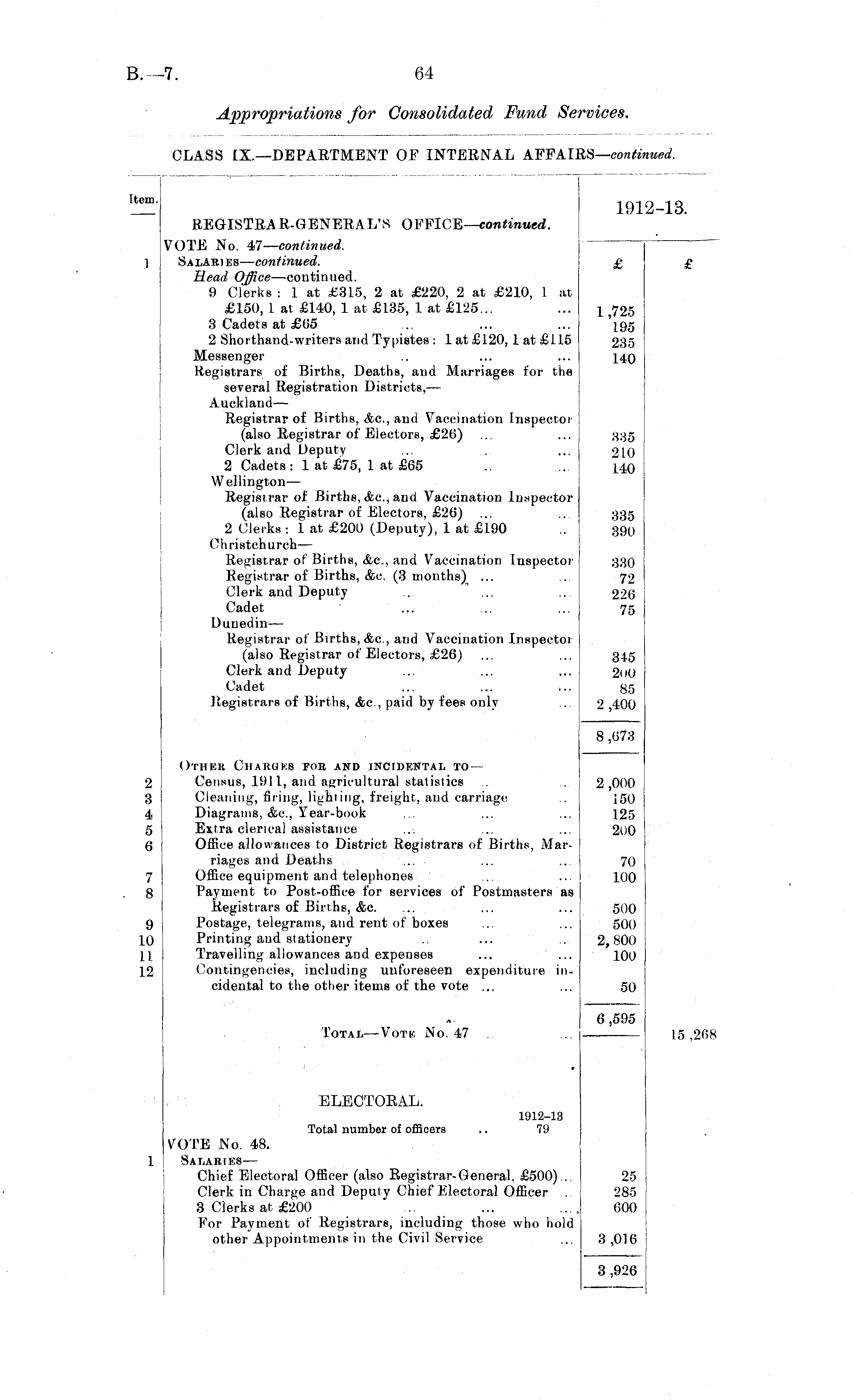 CLASS IX.—DEPARTMENT OF INTERNAL AFFAIRS—continued.