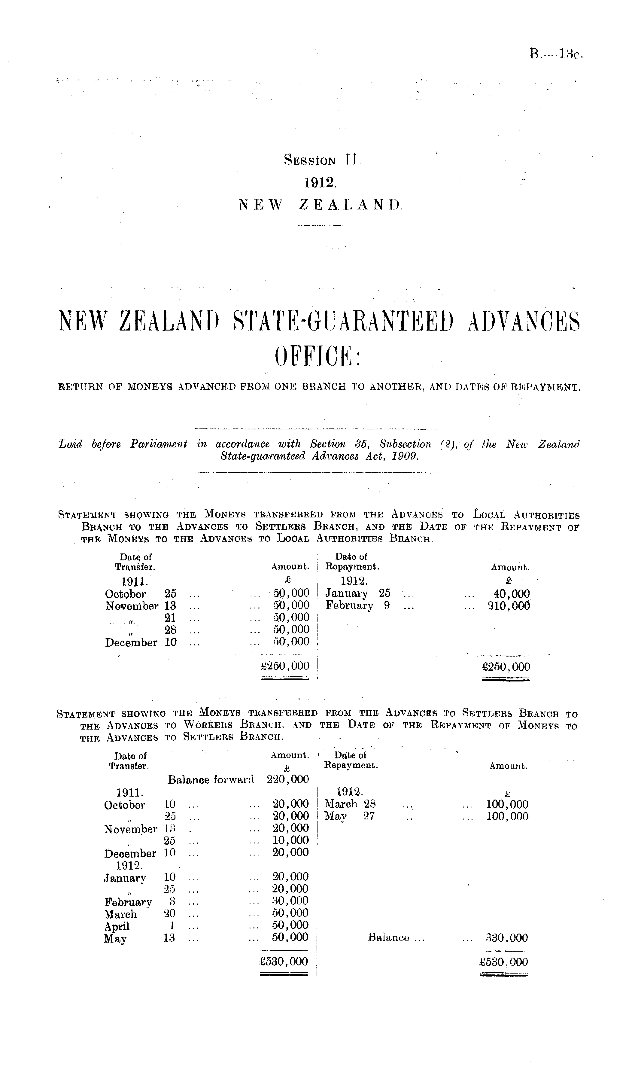 Laid before Parliament in accordance with Section 35, Subsection (2), of the New Zealand State-guaranteed Advances Act, 1909.