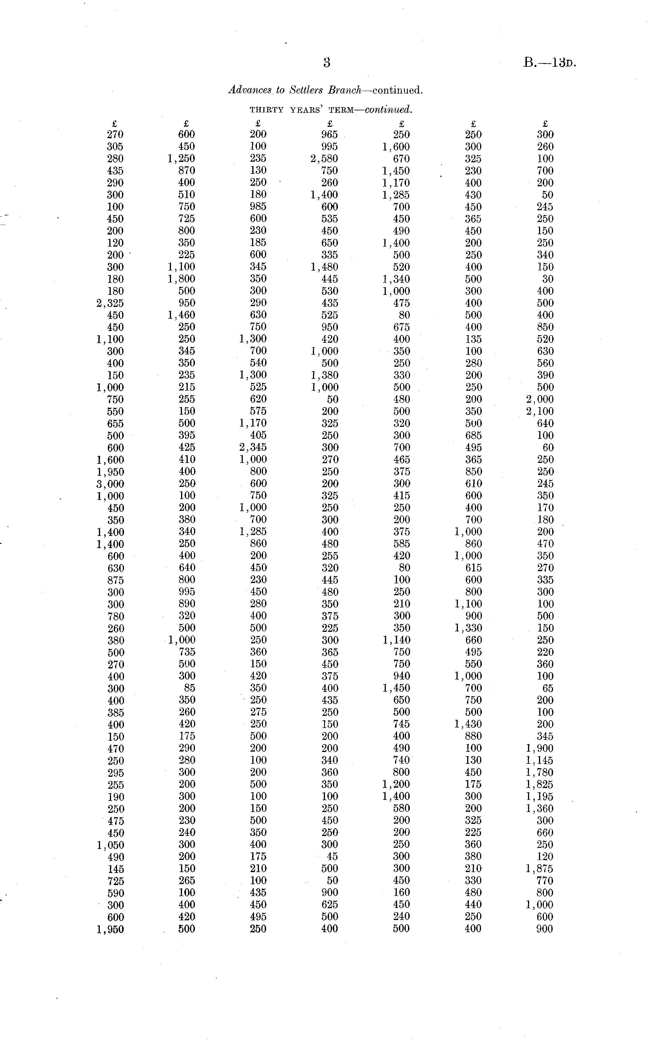 Advances to Settlers Branch —continued. thirty years' term — continued. £££££££ 270 600 200 965 250 250 300 305 450 100 995 1,600 300 260 280 1,250 235 2,580 670 325 100 435 870 130 750 1,450 230 700 290 400 250 260 1,170 400 200 300 510 180 1,400 1,285 430 50 100 750 985 600 700 450 245 450 725 600 535 450 365 250 200 800 230 450 490 450 150 120 350 185 650 1,400 200 250 200 225 600 335 500 250 340 300 1,100 345 1,480 520 400 150 180 1,800 350 445 1,340 500 30 180 500 300 530 1,000 300 400 2,325 950 290 435 475 400 500 450 1,460 630 525 80 500 400 450 250 750 950 675 400 850 1,100 250 1,300 420 400 135 520 300 345 700 1,000 350 100 630 400 350 540 500 250 280 560 150 235 1,300 1,380 330 200 390 1,000 215 525 1,000 500 250 500 750 255 620 50 480 200 2,000 550 150 575 200 500 350 2,100 655 500 1,170 325 320 suO 640 500 395 405 250 300 685 100 600 425 2,345 300 700 495 60 1,600 410 1,000 270 465 365 250 1,950 400 800 250 375 850 250 3,000 250 600 200 300 610 245 1,000 100 750 325 415 600 350 450 200 1,000 250 250 400 170 350 380 700 300 200 700 180 1,400 340 1,285 400 375 1,000 200 1,400 250 860 480 585 860 470 600 400 200 255 420 1,000 350 630 640 450 320 80 615 270 875 800 230 445 100 600 335 300 995 450 480 250 800 300 300 890 280 350 210 1,100 100 780 320 400 375 300 900 500 260 500 500 225 350 1,330 150 380 1,000 250 300 1,140 660 250 500 735 360 365 750 495 220 270 500 150 450 750 550 360 400 300 420 375 940 1,000 100 300 85 350 400 1,450 700 65 400 350 250 435 650 750 200 385 260 275 250 500 500 100 400 420 250 150 745 1,430 200 150 175 500 200 400 880 345 470 290 200 200 490 100 1,900 250 280 100 340 740 130 1,145 295 300 200 360 800 450 1,780 255 200 500 350 1,200 175 1,825 190 300 100 100 1,400 300 1,195 250 200 150 250 580 200 1,360 475 230 500 450 200 325 300 450 240 350 250 200 225 660 1,050 300 400 300 250 360 250 490 200 175 45 300 380 120 145 150 210 500 300 210 1,875 725 265 100 50 450 330 770 590 100 435 900 160 480 800 300 400 450 625 450 440 1,000 600 420 495 500 240 250 600 1,950 500 250 400 500 400 900