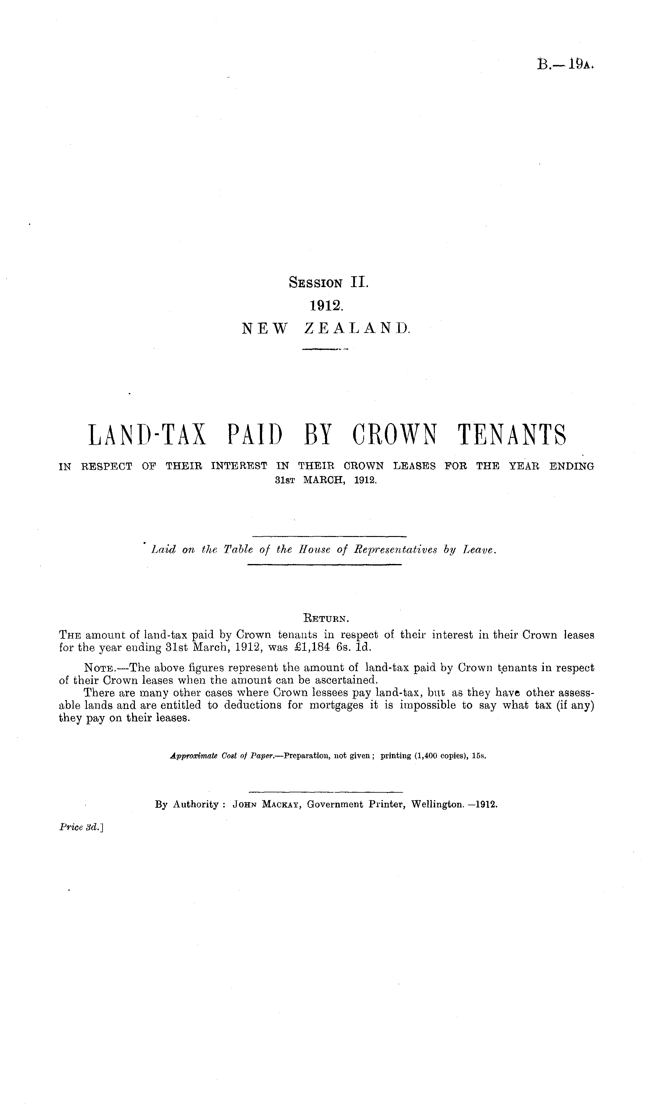 Authority : John Mackay, Government Printer, Wellington, —1912.