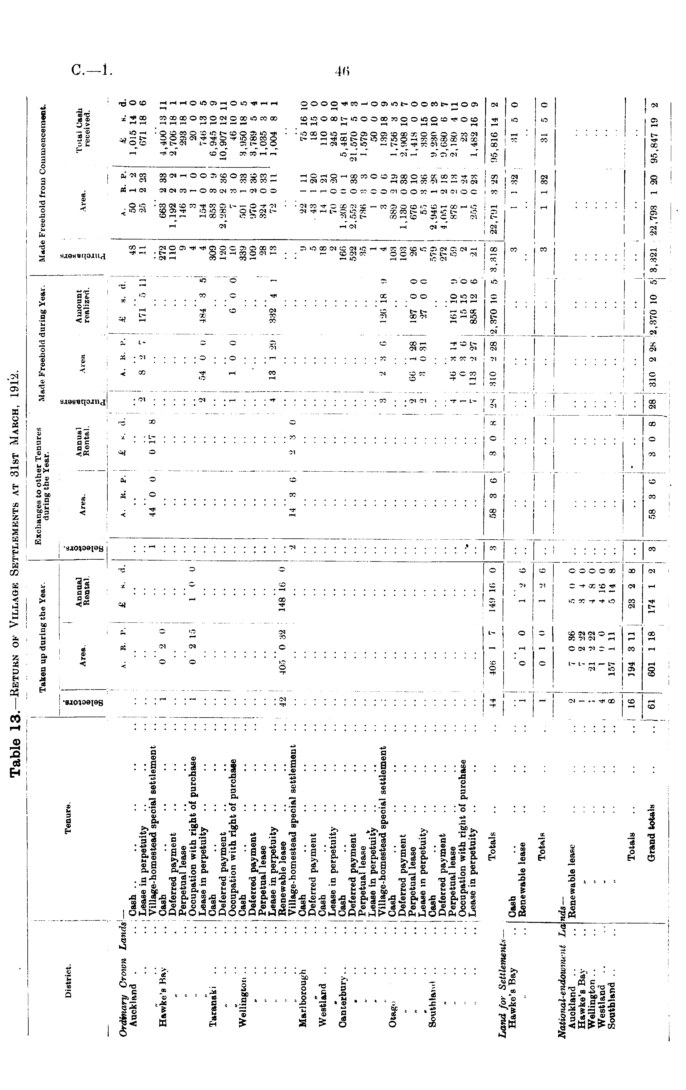 Table 13. —Return of Village Settlements at 31st March, 1912.