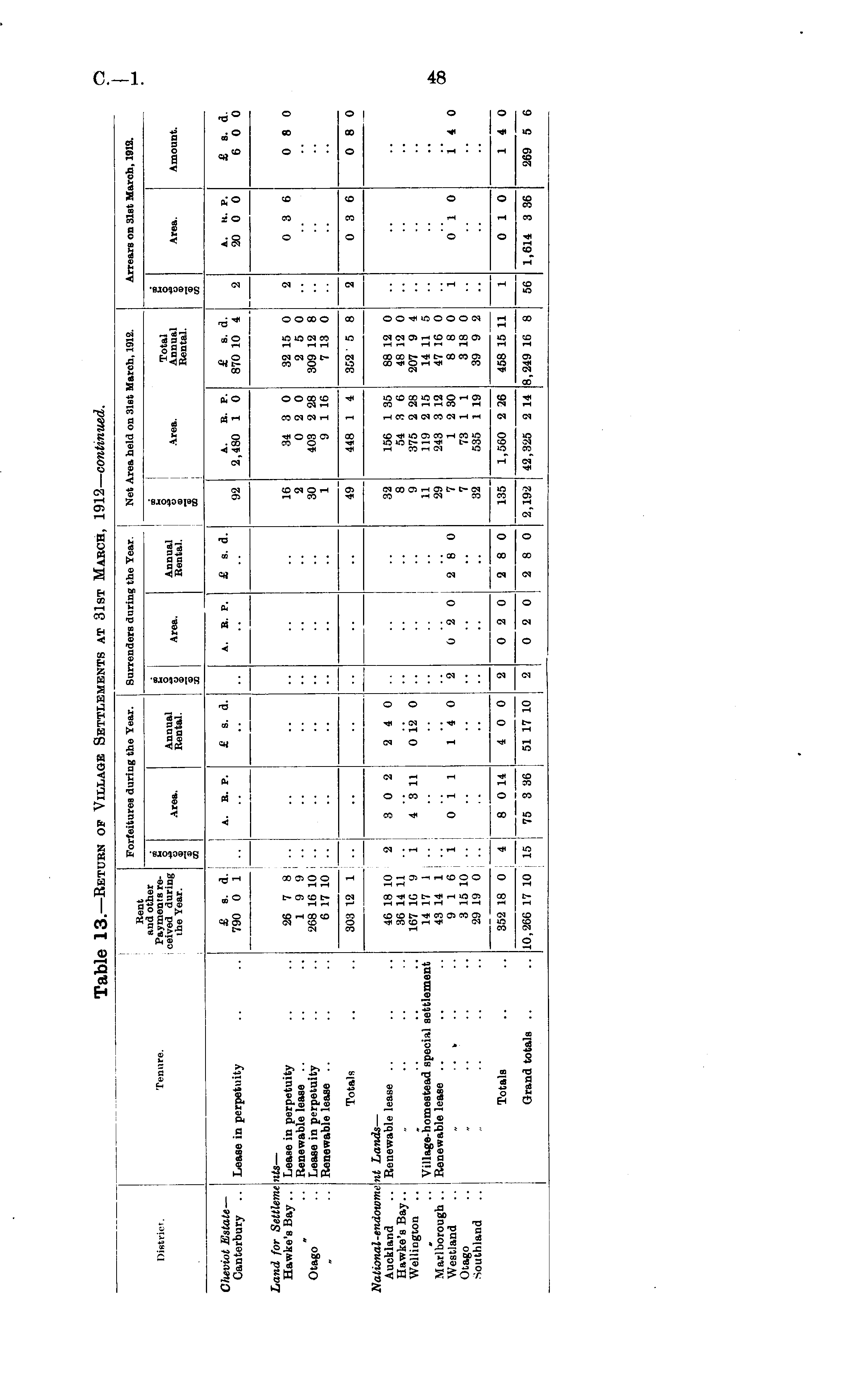 Table 13. —Return of Village Settlements at 31st March, 1912— continued.