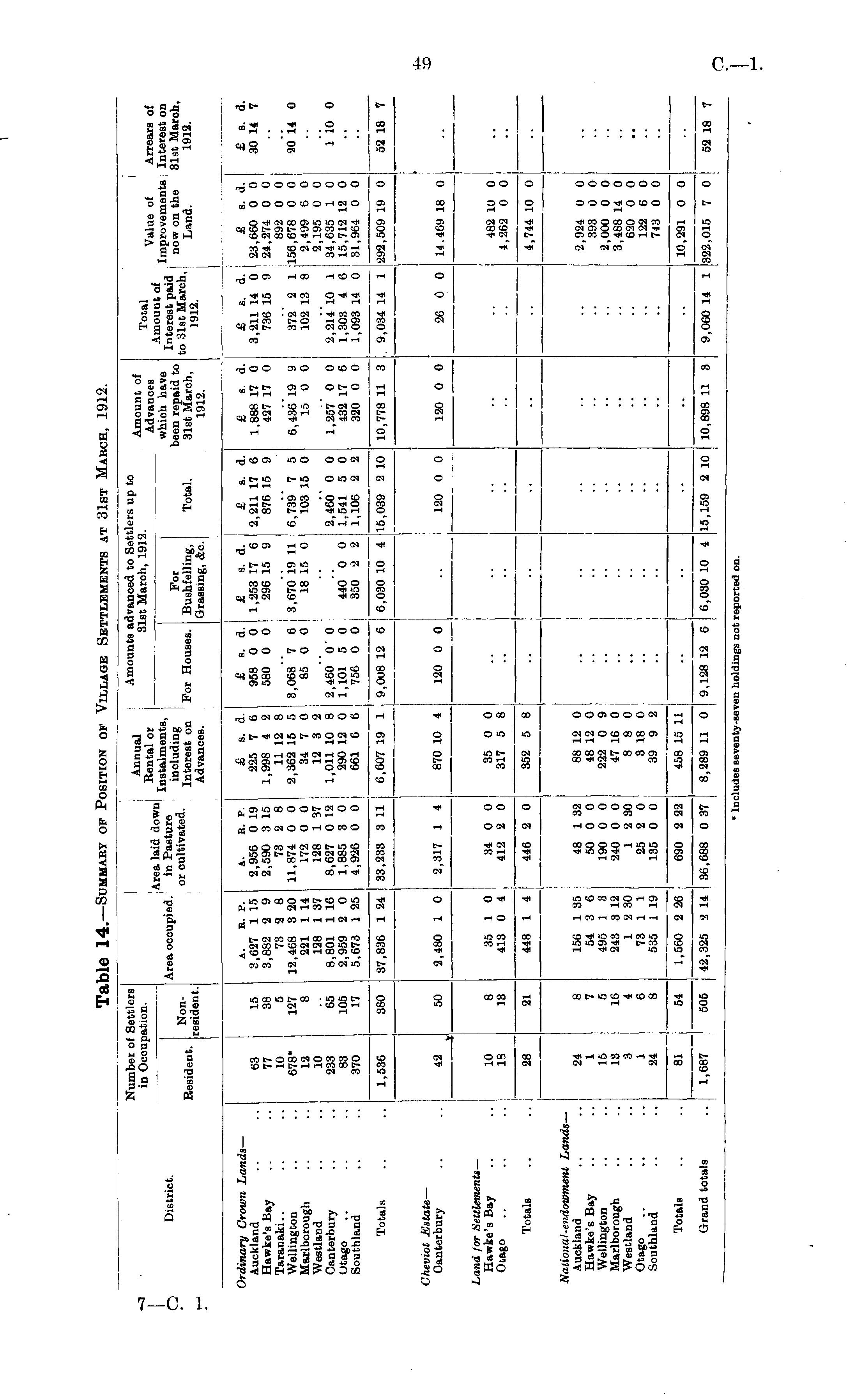 Table 14. —Summary of Position of Village Settlements at 31st March, 1912.