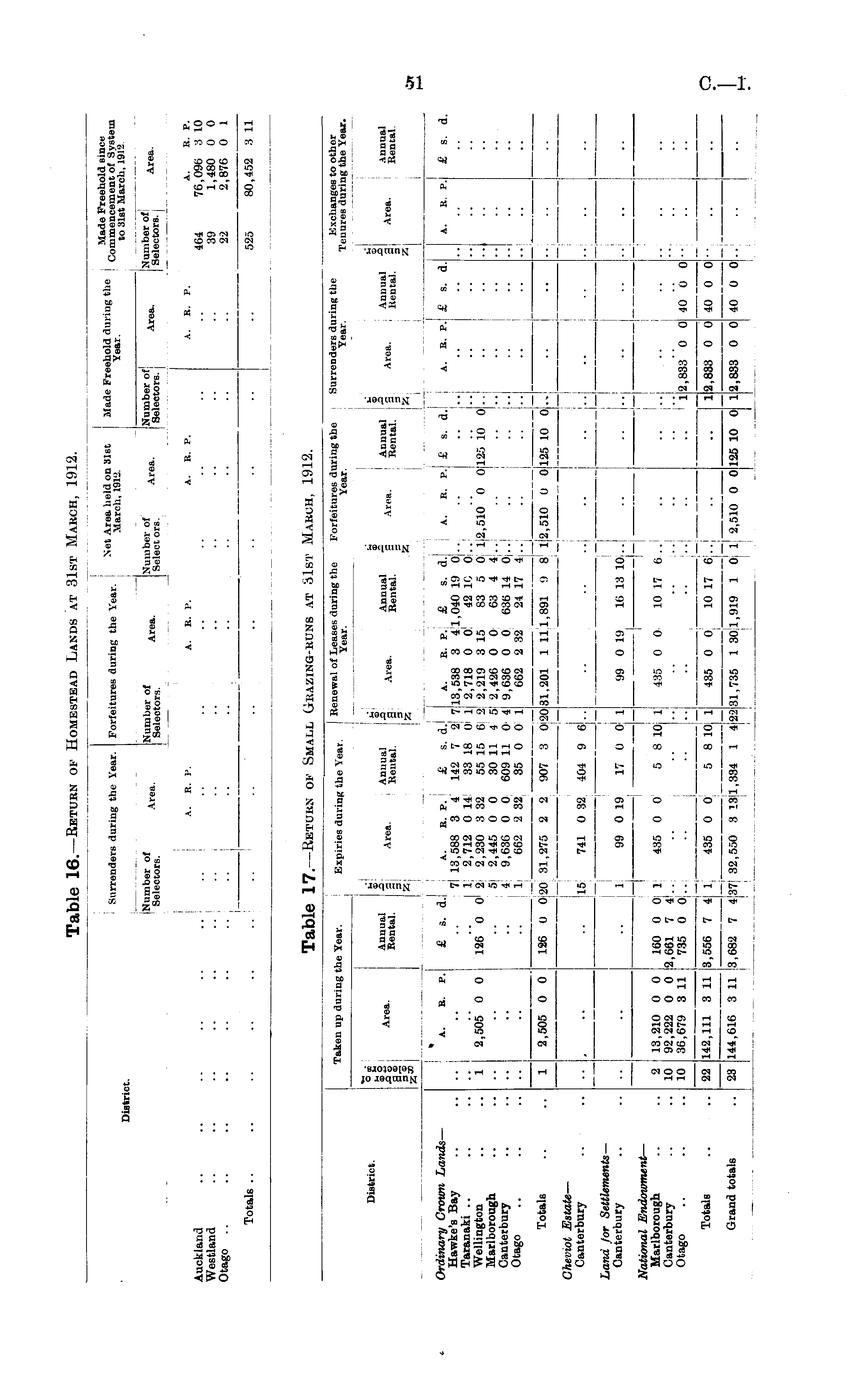 Table 16. —Return of Homestead Lands at 31st March, 1912.