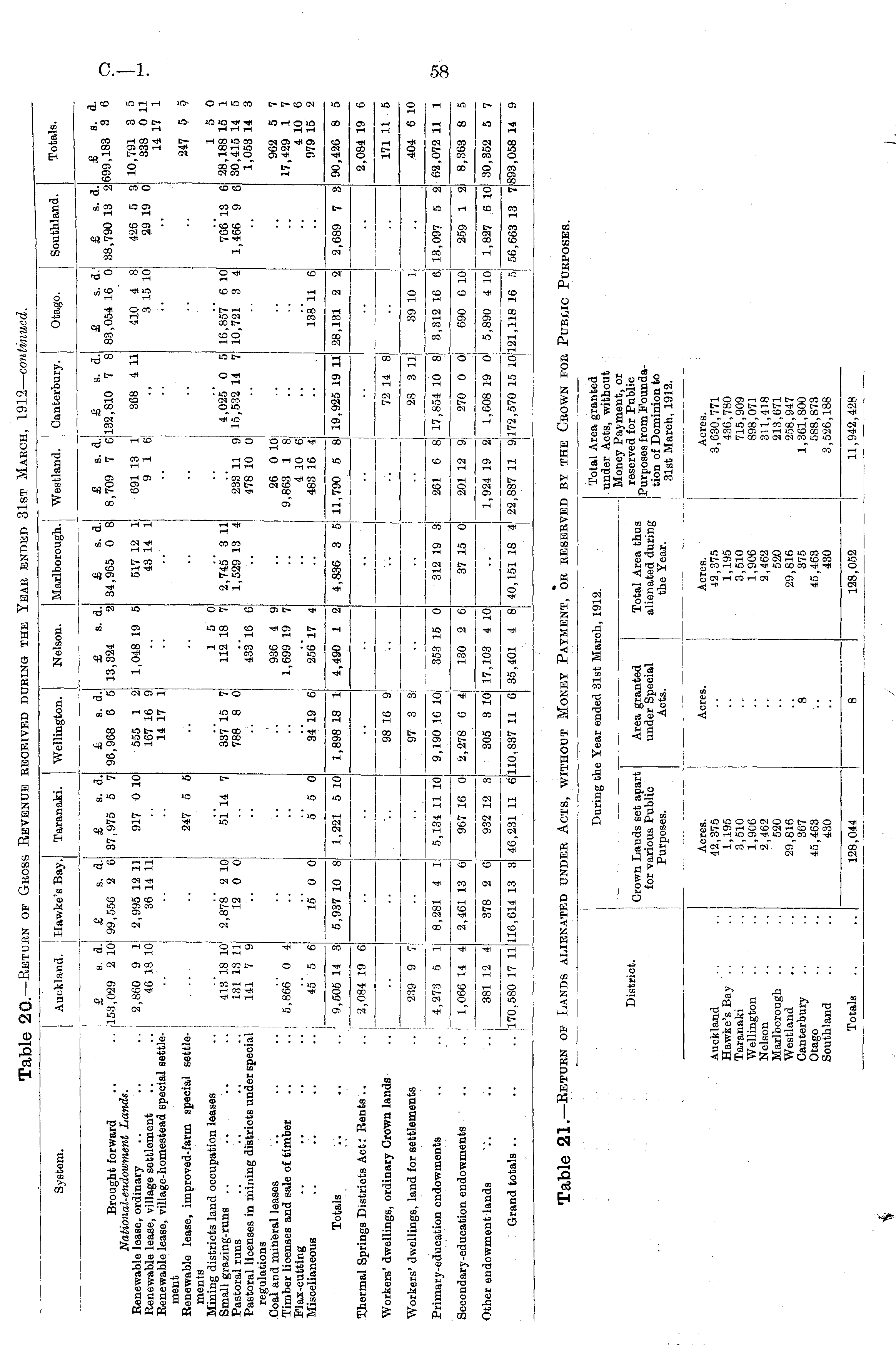 Table 20. —Return of Gross Revenue received during the Year ended 31st March, 1912— continued.