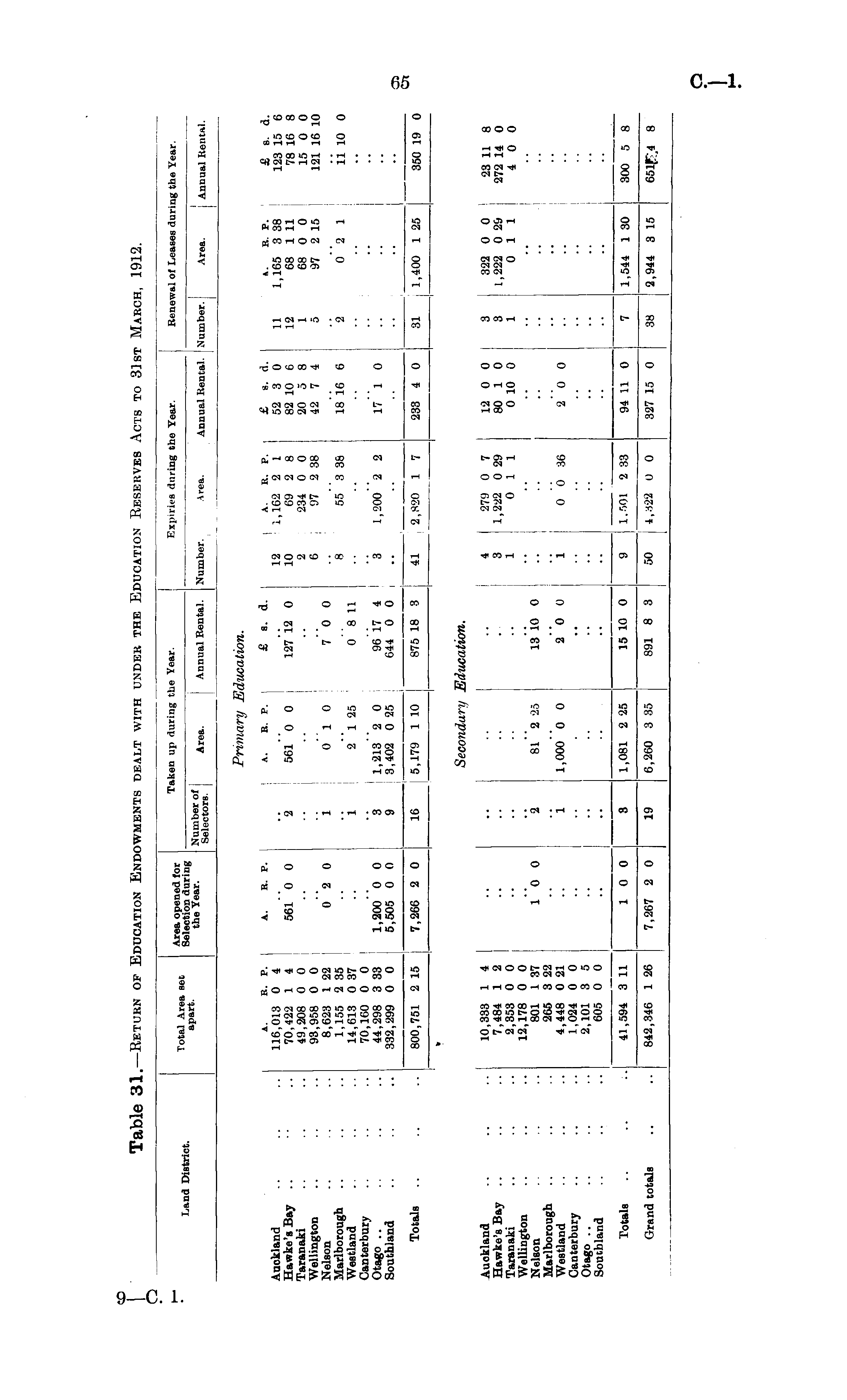 Table 31. —Return of Education Endowments dealt with under the Education Reserves Acts to 31st March, 1912.
