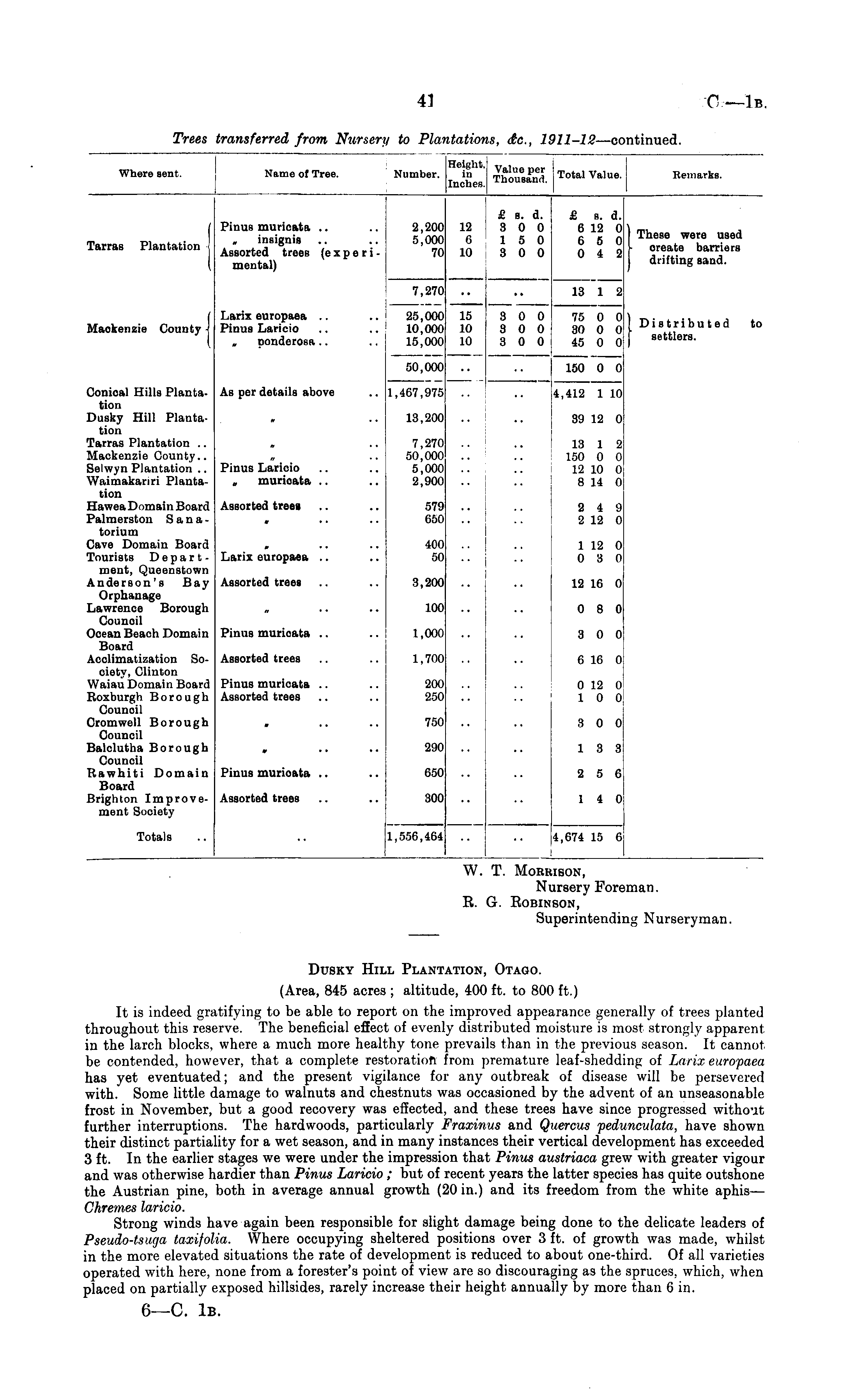 W. T. Morrison, Nursery Foreman. R. G. Eobinson, Superintending Nurseryman.