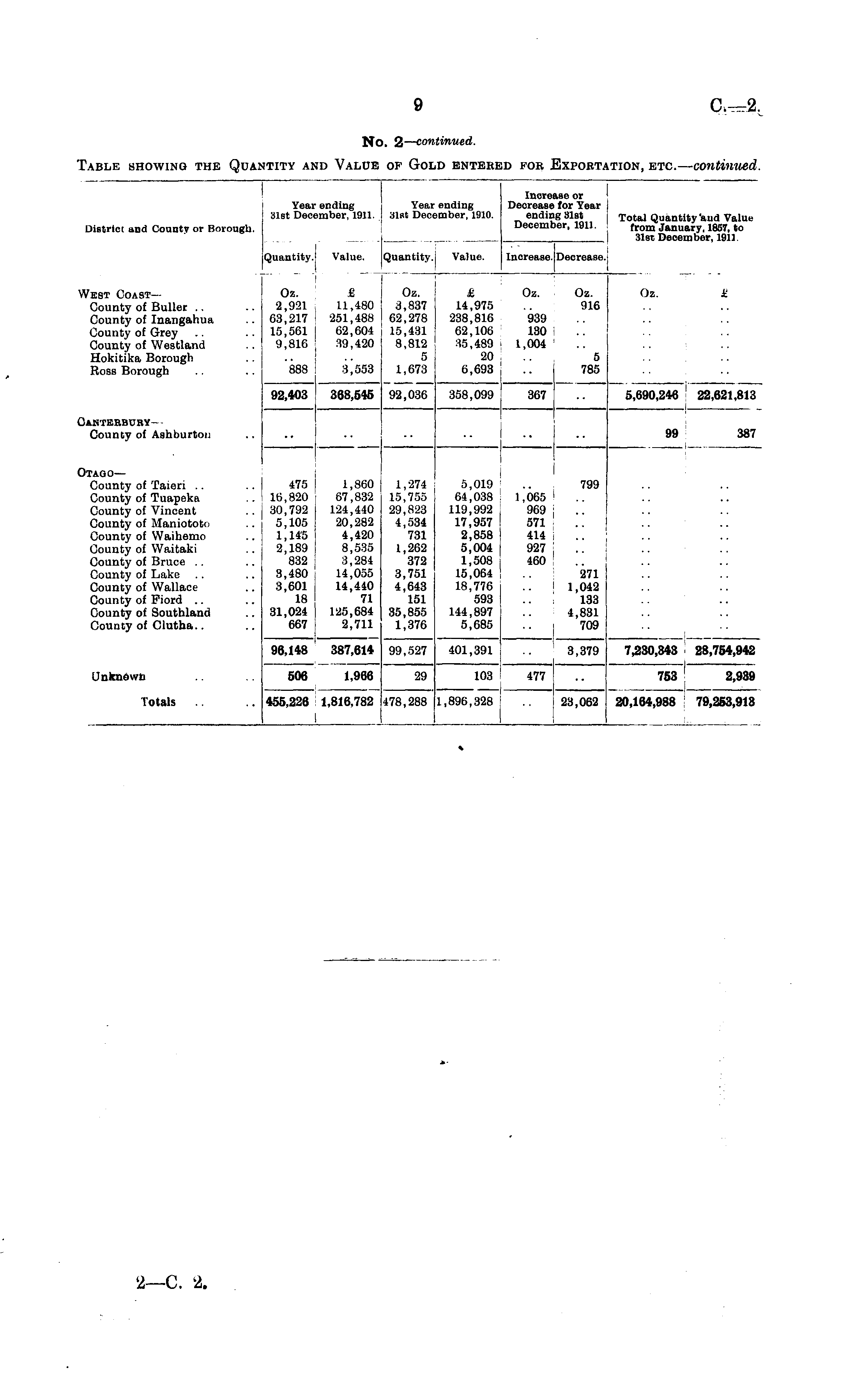 No. 2 — continued. Table showing the Quantity and Value of Gold entered for Exportation, etc. — continued.
