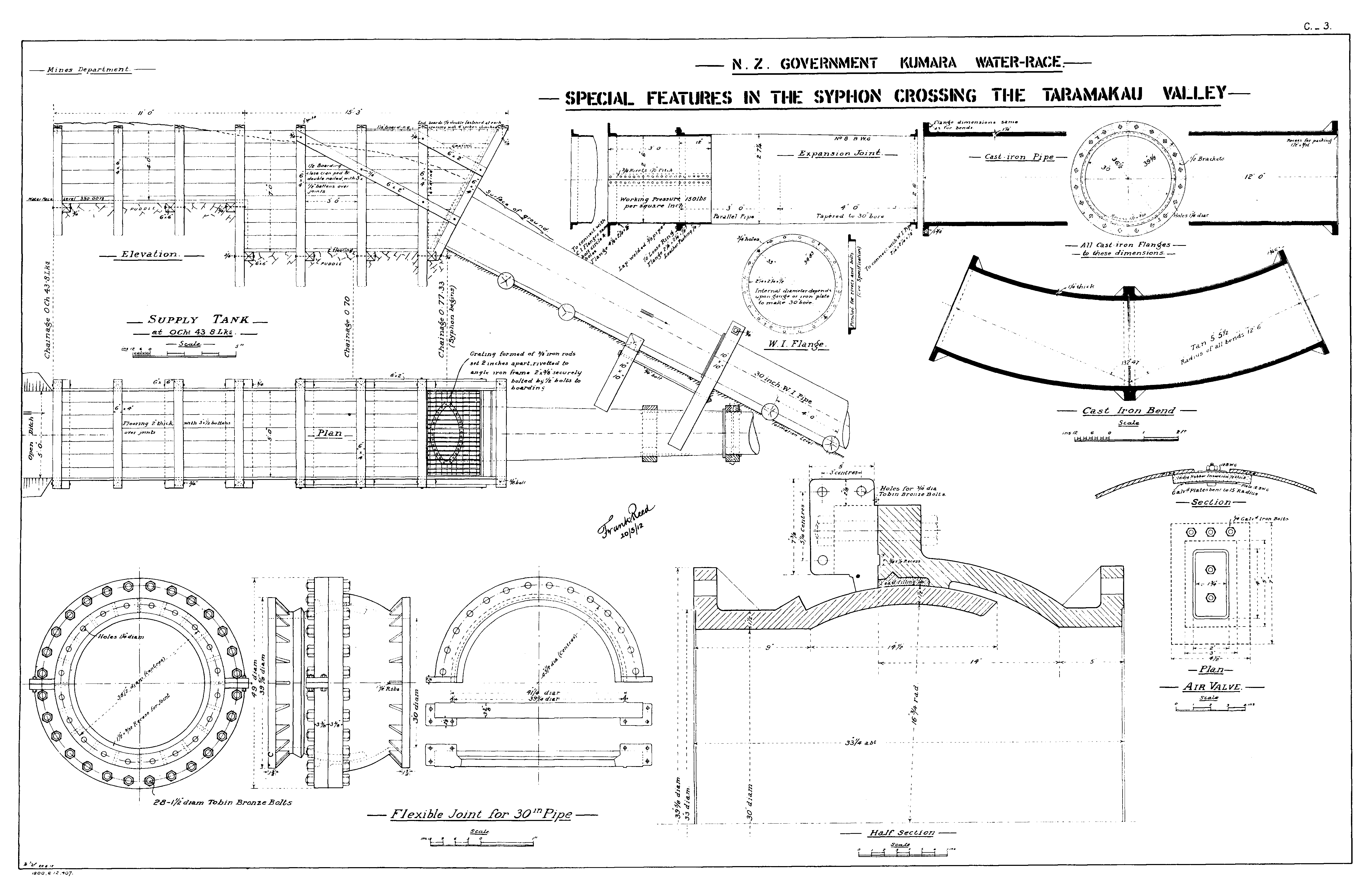 N.Z. GOVERNMENT KUMARA WATER-RACE. SPECIAL FEATURES IN THE SYPHON CROSSING THE TARAMAKAU VALLEY