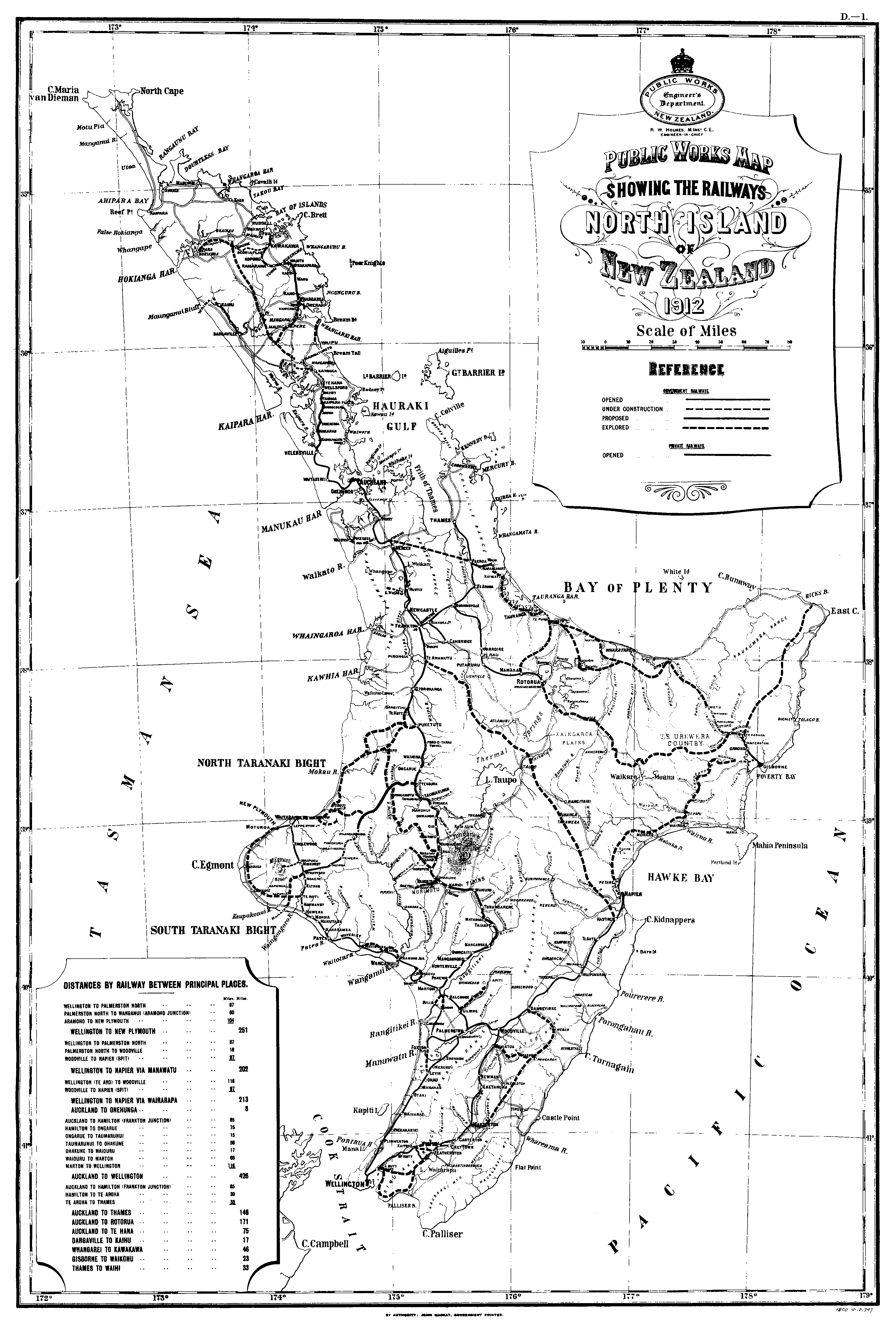 Public Works Map SHOWING THE RAILWAYS NORTH ISLAND OF New Zealand 1912