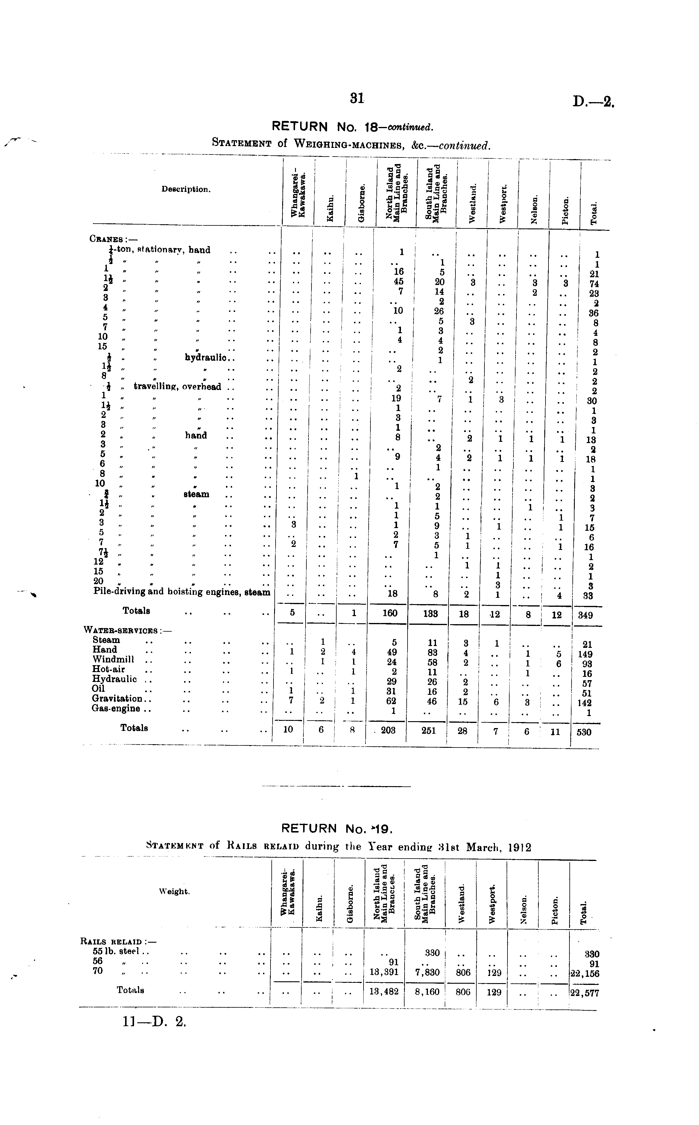 RETURN No. 19. Statement of Rails relaid during the Year ending 31st March, 1912.