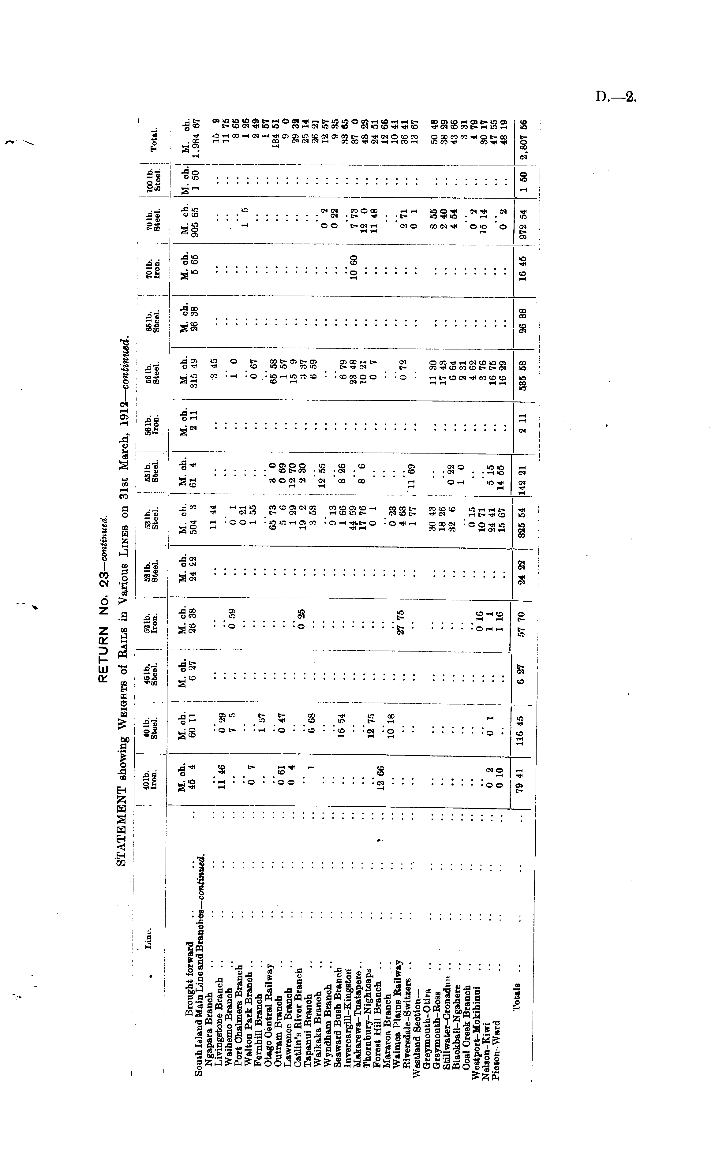 RETURN No. 23—continued. STATEMENT showing Weights of Rails in Various Lines on 31st March, 1912— continued.