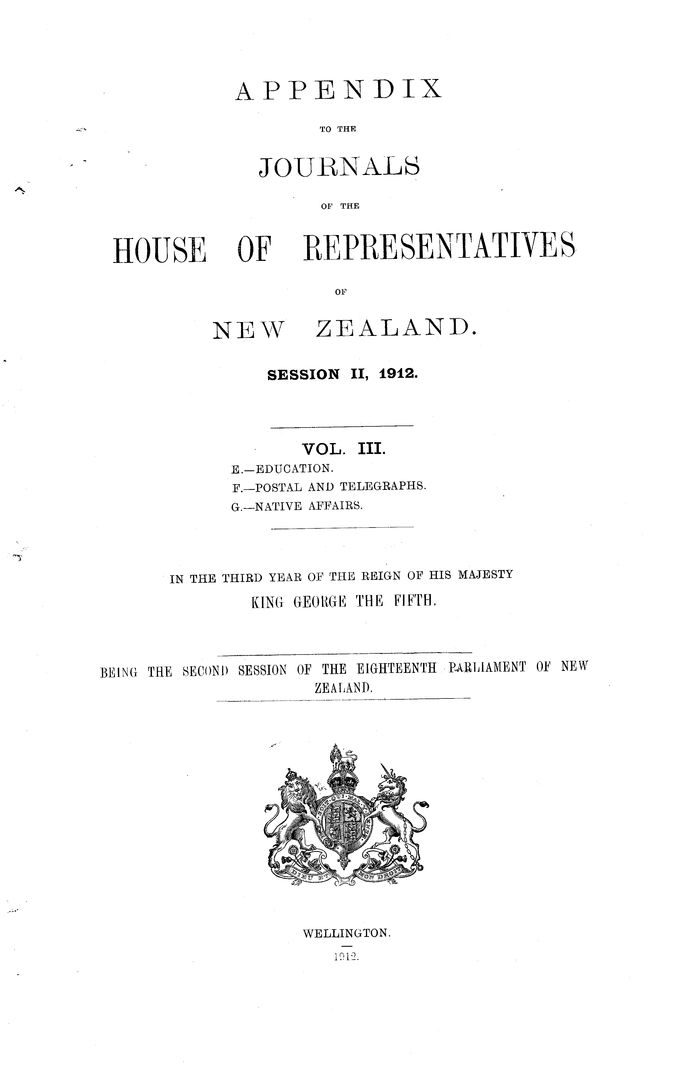 APPENDIX TO THE JOURNALS OF THE HOUSE OF REPRESENTATIVES OF NEW ZEALAND. SESSION 11, 1912.