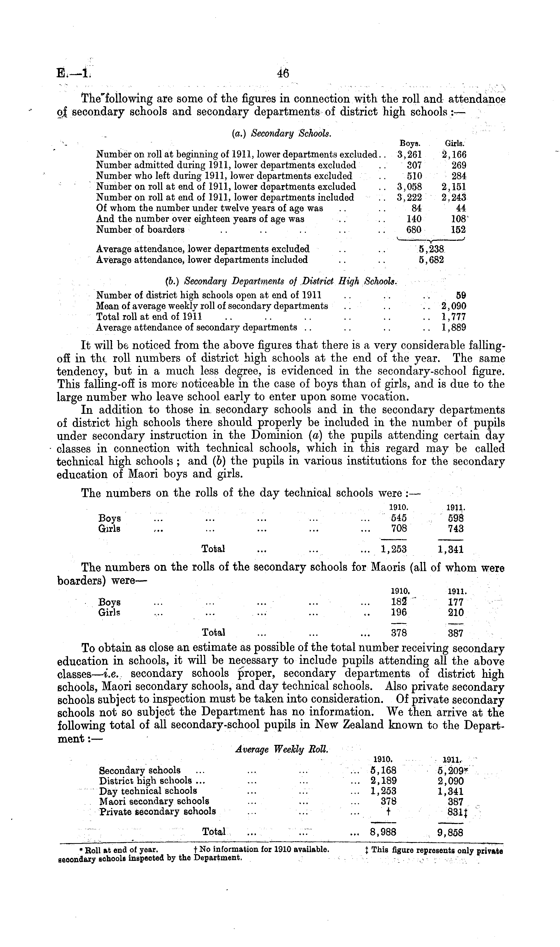 • Roll at end of year. t No information for 1910 available. J This figure represents only private secondary schools inspeoted by the Department. . . : ,