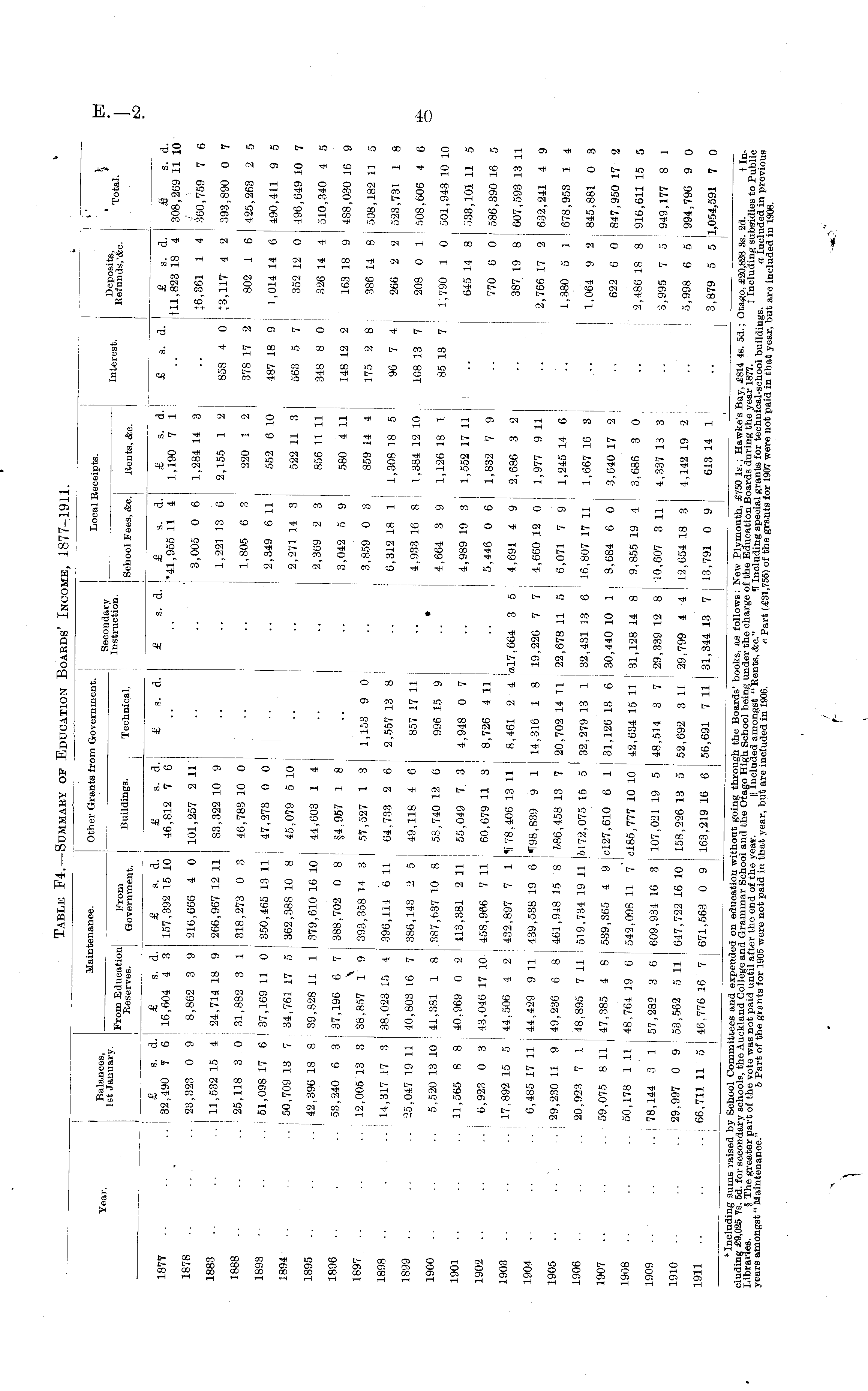 Table F4.—Summary of Education Boards' Income, 1877-1911.