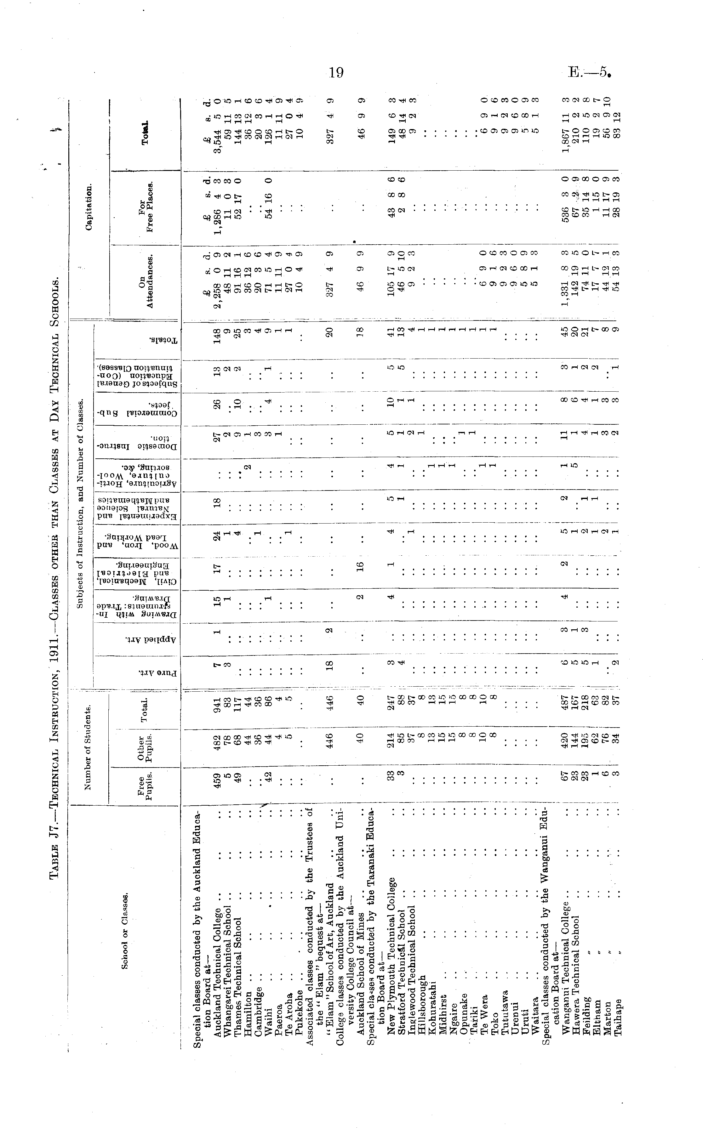 Subjects of Instruction, and Number of Classes. Number of Students. Capitation. School or Classes. Total. r.2 a -i a M ojooo a .SB'S o co£ « -a t.S Zr a a O o o rr °= ia oo cc a 2. a a a Scd co r?r5 3 H 13° o o 2~S &£,0 CO •ui a o cc . CD c a. s Q '3 oo . a& a oo O ■a it's flO SQ 2a5 £1.2 111 JJto a co For Free Places. ! Total. Free Pupils. Other Pupils. a) r. a On Attendances. O Special classes conducted by the Auckland Education Board at— Auckland Technical College Whangarei Technical School Thames Technical School Hamilton Cambridge .. .. .. .. .., Waihi .. Paeroa Te Aroha Pukekohe .. - .. Associated olasses conducted by the Trustees of the " Elam " bequest at— " Elam " School of Art, Auckland College classes conducted by the Auckland University College Council at— Auckland School of Mines Special classes conducted by the Taranaki Education Board at— New Plymouth Technical College Stratford Technical School Inglewood Technical School Hillsborough Kohuratahi Midhirst Ngaire Opunake Tariki Te Wera Toko Tututawa . Urenui Uruti Waitara .. .. .. Special classes conducted by the Wanganui Eduoation Board at— Wanganui Technical College Hawera Technical School Peilding Elt'nam Marton ,, • • , • • Taihape ., - • 459 5 49 482 78 68 44 36 44 4 5 941 83 117 44 36 86 4 5 7 3 1 1 15 1 17 24 1 4 18 I 18 *2 27 2 9 1 3 3 1 26 io 26 io 4 13 2 2 "l 148 9 25 3 4 9 1 1 £ s. d. 2,258 0 9 48 11 2 91 16 1 36 12 6 20 3 6 71 5 4 11 11 9 27 0 4 10 4 9 £ s. d. 1,286 4 3 11 0 3 52 17 0 £ a. d. 3,544 5 0 59 11 5 144 13 1 36 12 6 20 3 6 126 1 4 11 11 9 27 0 4 10 4 9 42 "l 1 z 54 16 0 •• -■ 4 1 •- 446 446 18 2 2 .. 20 327 4 9 327 4 9 li 40 40 16 10 1 1 5 5 18 41 13 4 1 1 1 1 1 1 1 1 46 9 9 46 9 9 33 3 214 85 37 8 13 15 15 8 8 10 8 247 88 37 8 13 15 15 8 l 8 10 8 3 4 4 i 4 i "A 5 1 4 1 5 1 2 1 105 17 9 46 5 10 9 2 3 43 8 6 2 8 6 149 6 3 48 14 4 9 2 3 ! 2 5 1 2 1 2 1 2 1 1 i i i i i i 5 1 1 •• ■• .. -■ " 6 9 0 9 16 9 2 3 9 6 0 5 8 9 5 13 6 9 0 9 16 9 2 3 9 6 0 5 8 9 5 13 •• •• 67 23 23 1 6 3 420 144 195 62 76 34 487 167 218 63 82 37 6 5 5 1 2 3 1 3 4 11 1 4 1 3 2 4 1 3 j 3 ! 8 6 4 1 3 3 3 l s 2 ! 2 1 45 20 21 7 8 9 1,331 8 3 142 19 5 74 11 0 17 7 7 44 12 1 54 13 3 536 3 0 67 2 9 35 14 8 1 15 0 11 17 9 28 19 3 1,867 11 3 210 2 2 110 5 8 19 2 7 56 9 10 83 12