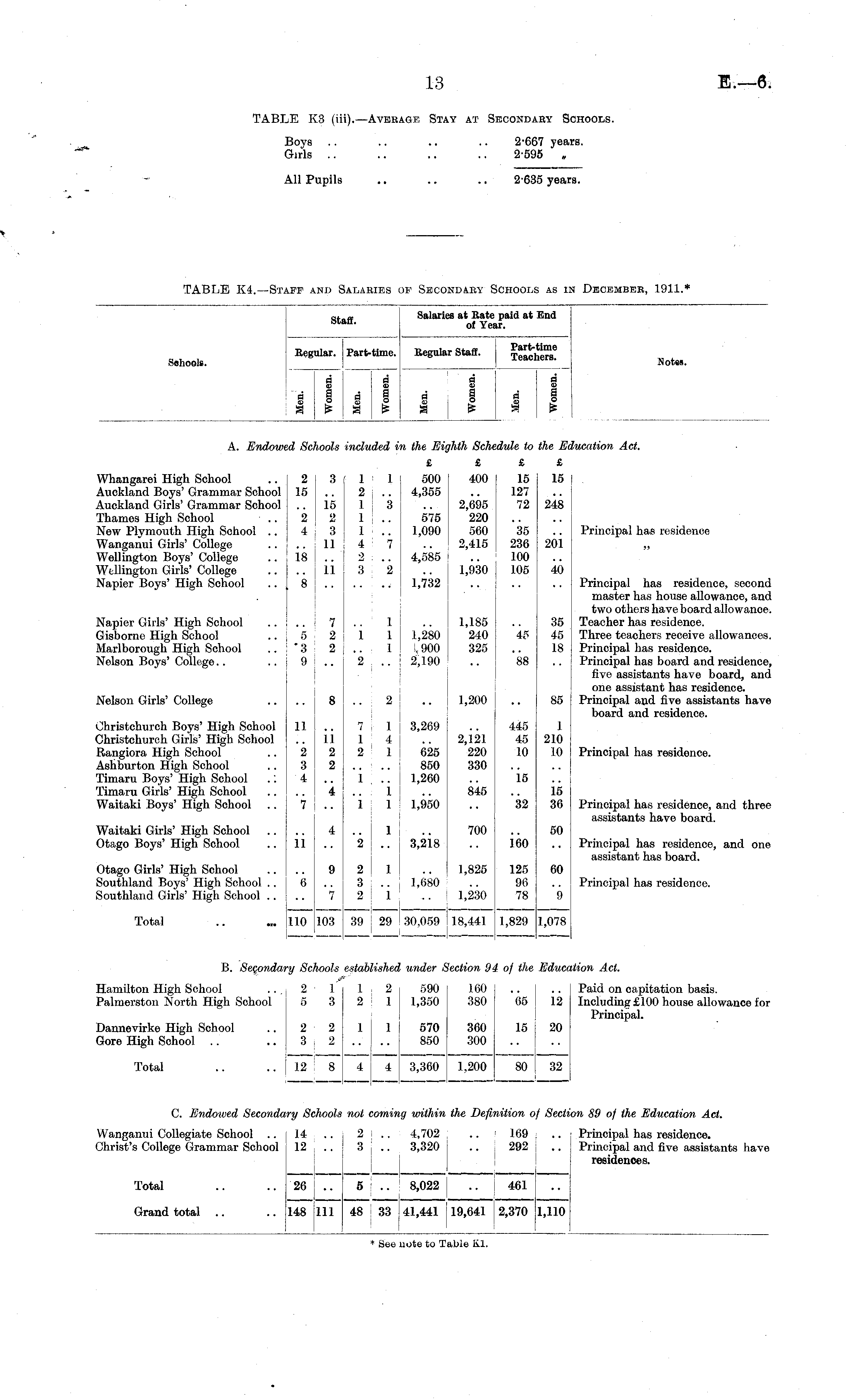 TABLE K4. —Staff and Salaries of Secondary Schools as in December, 1911.*