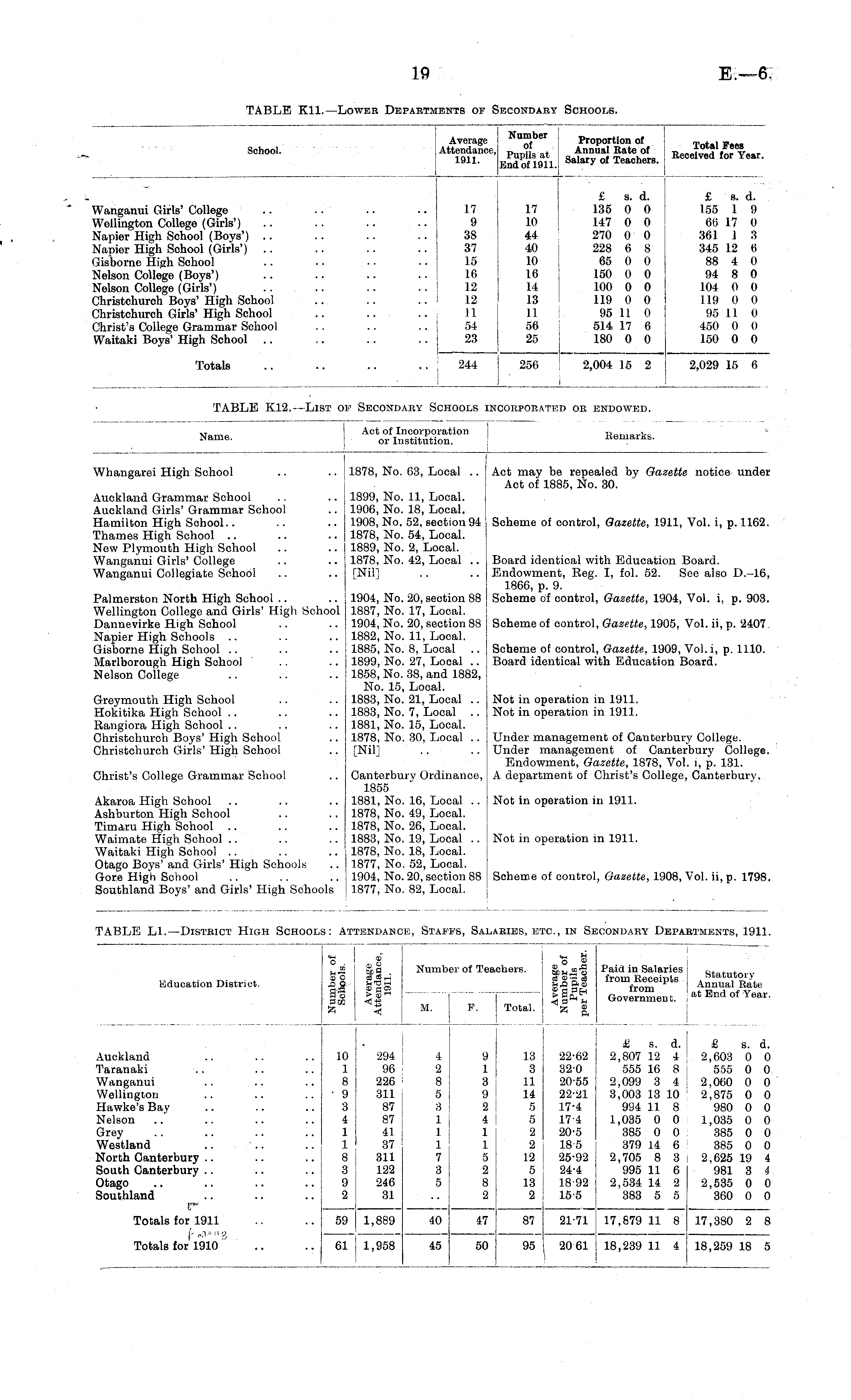 TABLE K12.—List of Secondary Schools incorporated or endowed.