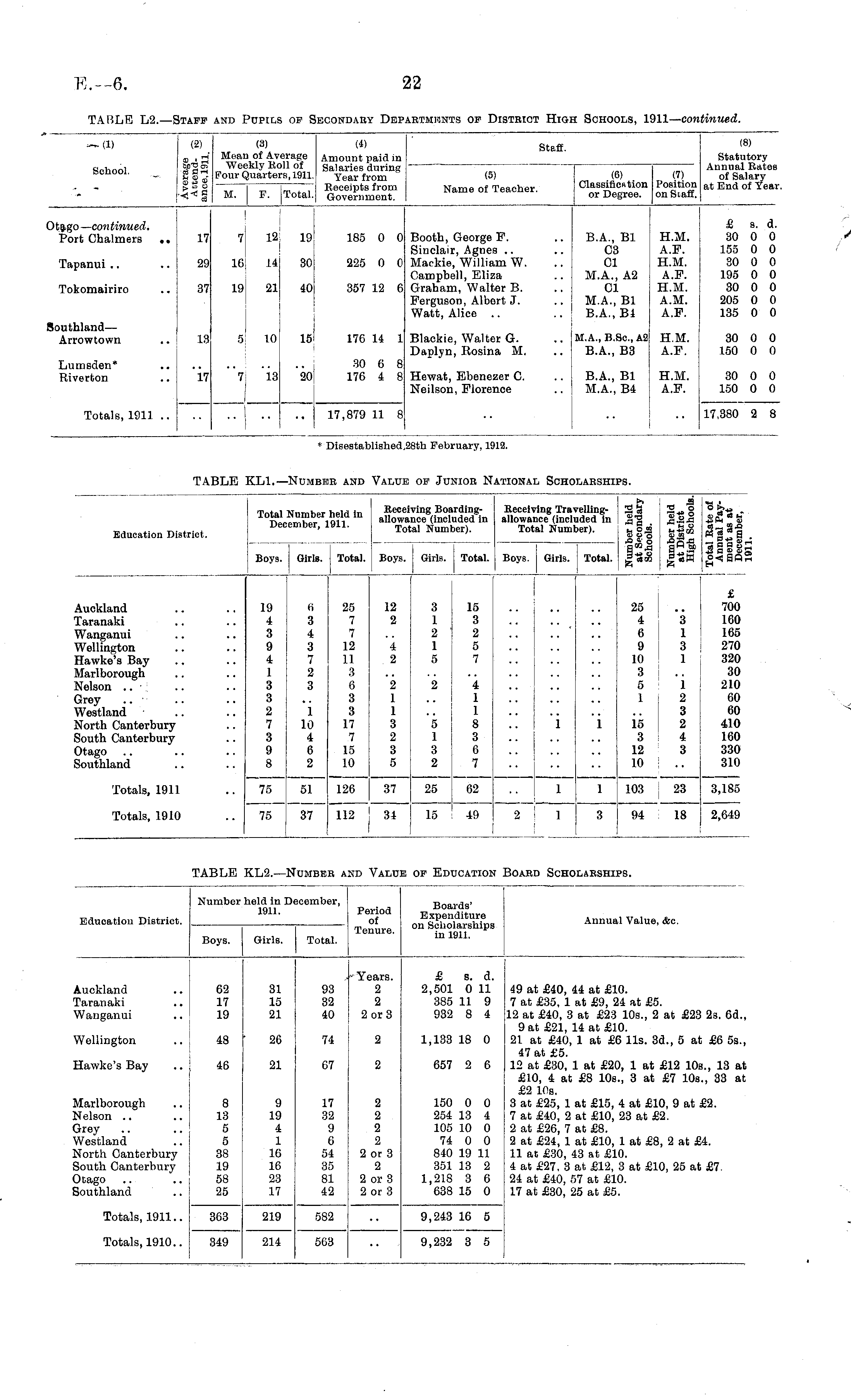 TABLE L2.—Staff and Pupils of Secondary Departments of District High Schools, 1911— continued.