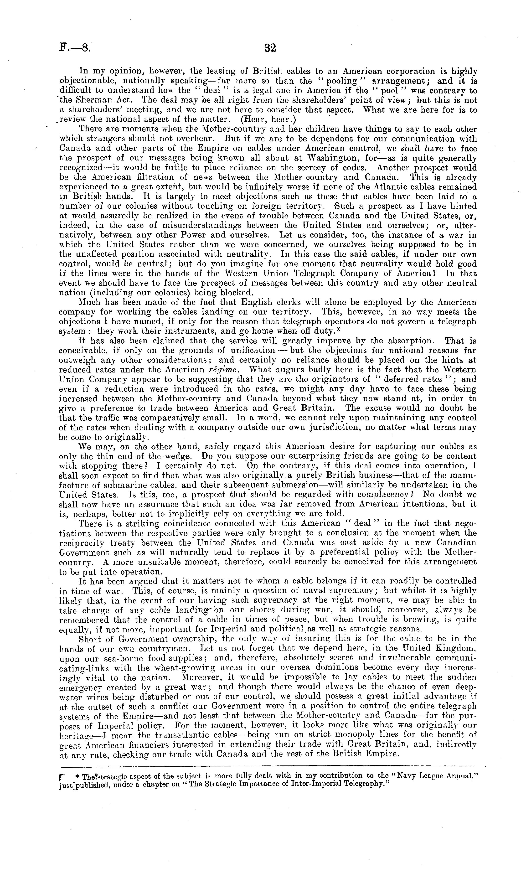 r * Thetstrategic aspect of the subject is more fully dealt with in my contribution to the "Navy League Annual," just "published, under a chapter on "The Strategic Importance of Inter-Imperial Telegraphy."