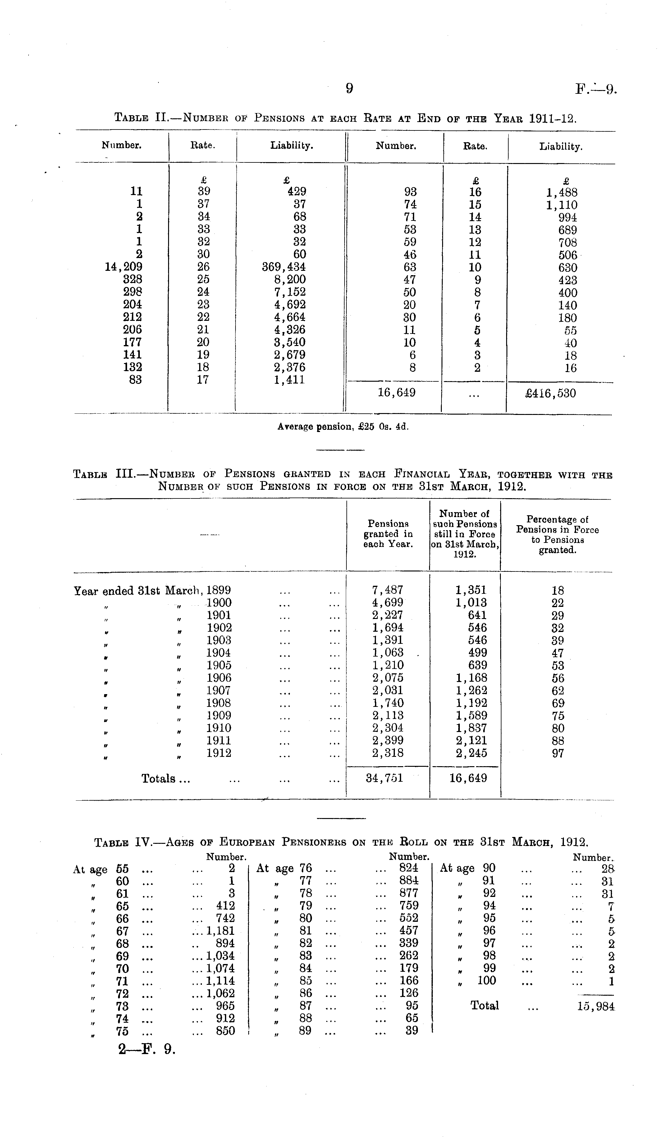 Table II.—Number of Pensions at each Rate at End of the Year 1911-12.