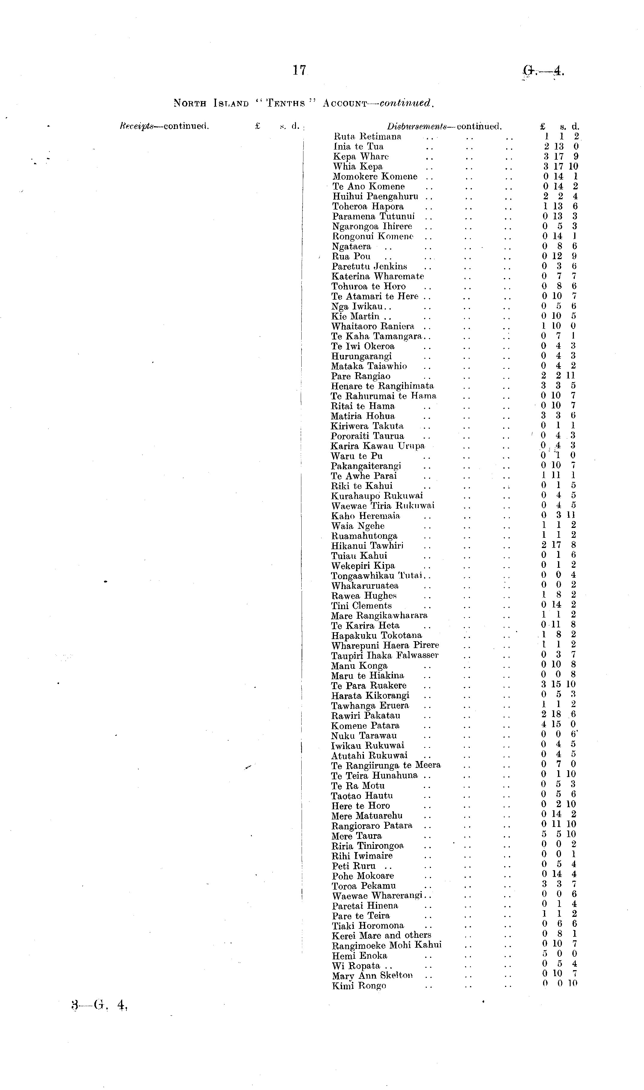 Receipts —continued. £ s. d. Disbursements —continued. £ s. d. Ruta Retimana .. .. .. 112 Inia te Tua .. .. .. 2 13 0 Kepa Whare .. .. .. 317 9 Whia Kepa .. .. .. 3 17 10 Momokere Komene . . .. .. 0 14 1 Te Ano Komene .. .. .. 014 2 Huihui Paengahuru .. .. .. 2 2 4 Toheroa Hapora . . .. .. 1 13 6 Paramena Tutunui .. .. .. 013 3 Ngarongoa Ihirere .. .. .. 0 5 3 Rongonui Komene . . .. .. 0 14 1 Ngataera .. .. .. .. 086 / Rua Pou .. . . .. .. 012 9 Paretutu Jenkins .. .. .. 0 3 6 Katerina Wharomate .. .. 0 7 7 Tohuroa te Horo .. .. .. 0 8 6 Te Atamari te Here .. .. .. 010 7 Nga Iwikau.. .. .. .. 0 5 6 Kie Martin .. . . . . . . 0 10 5 Whaitaoro Raniera .. .. .. 1 10 0 Te Kaha Tamangara.. .. .'. 0 7 1 Te Iwi Okeroa .. .. .. 0 4 3 Hurungarangi .. .. .. 0 4 3 Mataka Taiawhio .. .. .. 0 4 2 Pare Rangiao . . .. .. 2 211 Henare te Rangihimata .. . . 3 3 5 Te Rahurumai te Hama .. .. 010 7 Ritai te Hama .. .. .. 0 10 7 Matiria Hohua .. .. .. 3 3 6 Kiriwera Takuta .. .. .. 0 11 Pororaiti Taurua .. .. .. 0 4 3 Karira Kawau Unipa .. .. 0.43 Waru te Pu .. .. .. 0 10 Pakangaitcrangi .. .. .. 0 10 7 Te Awhe Parai .. .. .. I 11 1 Riki te .Kahui .. .. . •. 0 15 Kurahaupo Rukuwai .. . . 0 4 5 Waewae Tiria Rukuwai .. .. 0 4 5 Kaho Heremaia .. .. .. 0 311 Waia Ngehe . . .. .. 112 Ruamahutonga .. .. 112 Hikanui Tawhiri . . .. .. 217 8 Tuiau Kahui .. .. 0 16 Wekepiri Kipa .. .. 0 12 Tongaawhikau Tutai. . .. .. 0 0 4 Whakaruruatea .. .. .". 0 0 2 Rawea Hughes .. . . . . 18 2 Tini Clements . . .. . . 014 2 Mare Rangikawhaiara .. .. 112 Te Karira Heta .. .. .. 0 11 8 Hapakuku Tokotana .'. . . ' 18 2 Wharepuni Haera Pirere .. ... 112 Taupiri Ihaka Ealwasser .. . . 0 3 7 Manu Konga .. .. . . 010 8 Maru te Hiakina .. . . .. 0 0 8 Te Para Ruakere .. .. .. 315 10 Harata Kikorangi . . .. .. 0 5 3 Tawhanga Eruera .. .. .. 112 Rawiri Pakatau . . .. .. 218 6 Komene Patara .. .. .. 15 0^ Nuku Tarawau .. .. .. 0 0 6' Iwikau Rukuwai .. .. .. 0 4 5 Atutahi Rukuwai .. . . . . 0 4 5 Te Rangiirunga te Meera .. .. 0 7 0 Te Teira Hunahuna .. . . . . 0 1 10 Te Ra Motu .. . . .. 0 5 3 Taotao Hautu .. .. .. 0 5 6 Here te Horo .. .. • • 0 210 Mere Matuarehu .. .. 0 14 2 Rangioraro Patara .. . . .. 0 11 10 Mere Taura .. . . • • 5 510 Riria Tinirongoa .. ' . . ■ ■ 0 0 2 Rihi Iwimaire .. • ■ • • 0 0 1 Peti Ruru .. .. • • • • 0 5 4 Pohe Mokoare . . .. • • 014 4 Toroa Pekamu .. .. • • 3 3 7 Waewae Wharerangi.. .. . . 0 0 6 Paretai Hinena .. .. • ■ 0 14 Pare te Teira .. • ■ ■ • 112 Tiaki Horomona .. .. • • 0 6 6 Kerei Mare and others . . .. 0 8 1 Rangimoeke Mohi Kahui .. .. 010 7 Hemi Enoka .. • ■ ■ ■ 5 0 0 Wi Ropata .. .. • • • • 0 5 4 Mary Ann Skelton .. .. .. 010 7 Kirni Rongo .. .. • • 0 010