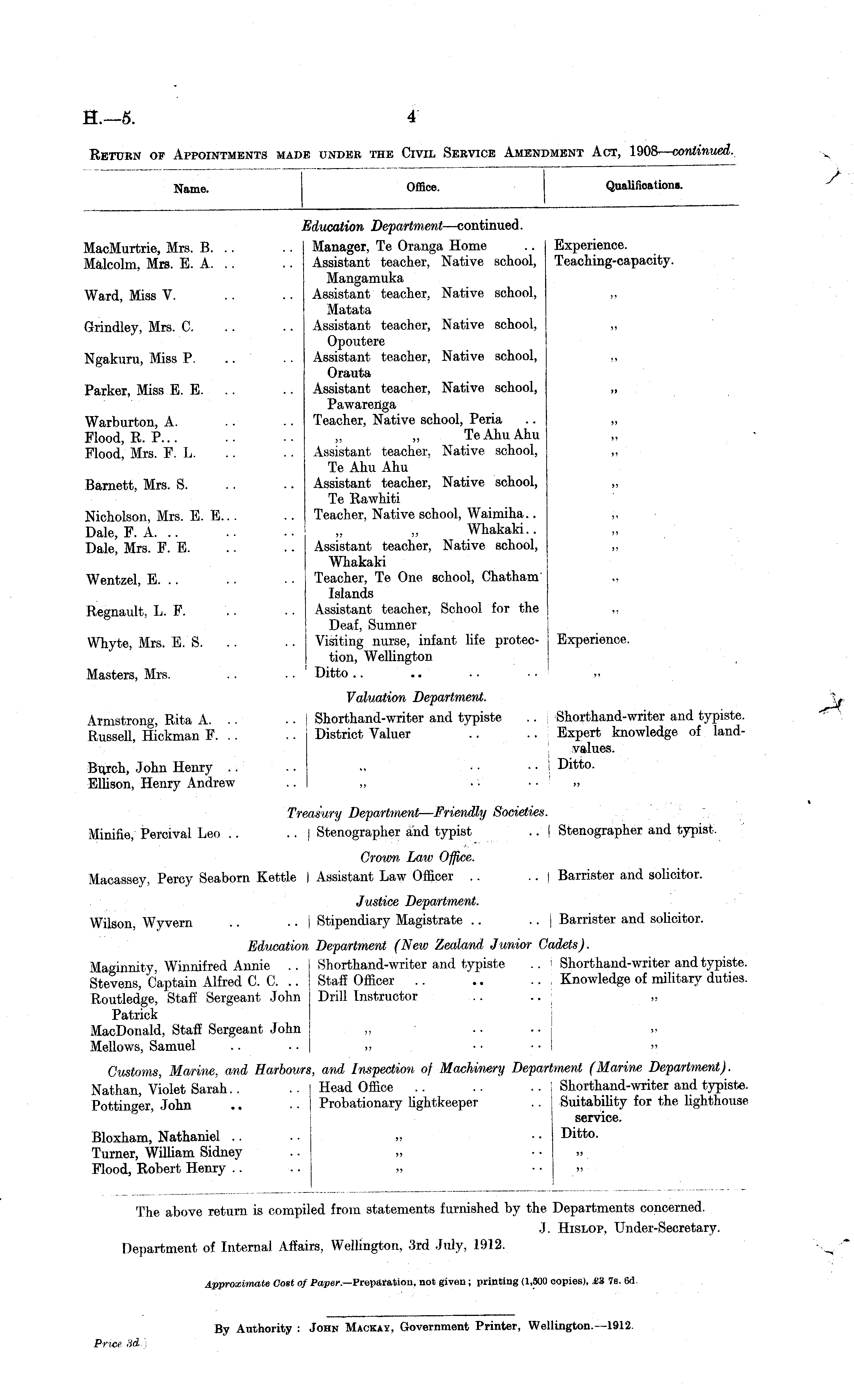 By Authority : John Mackay, Government Printer, Wellington.—l9l2. Price 3d.)