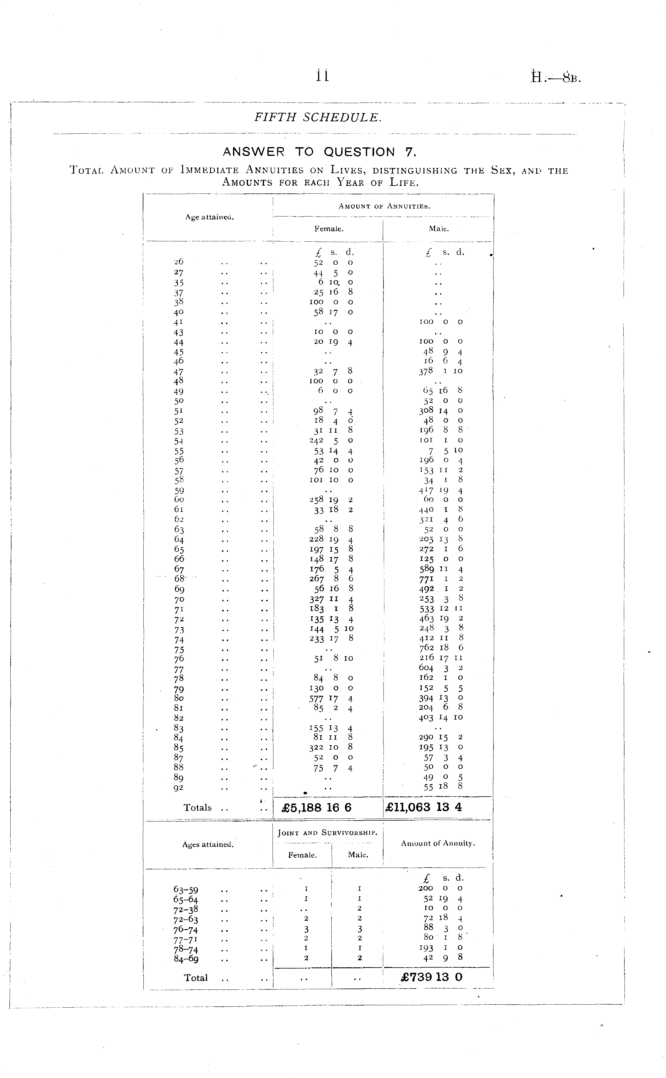 ANSWER TO QUESTION 7. Total Amount of Immediate Annuities on Lives, distinguishing the Sex, and the Amounts for each Year of Life.