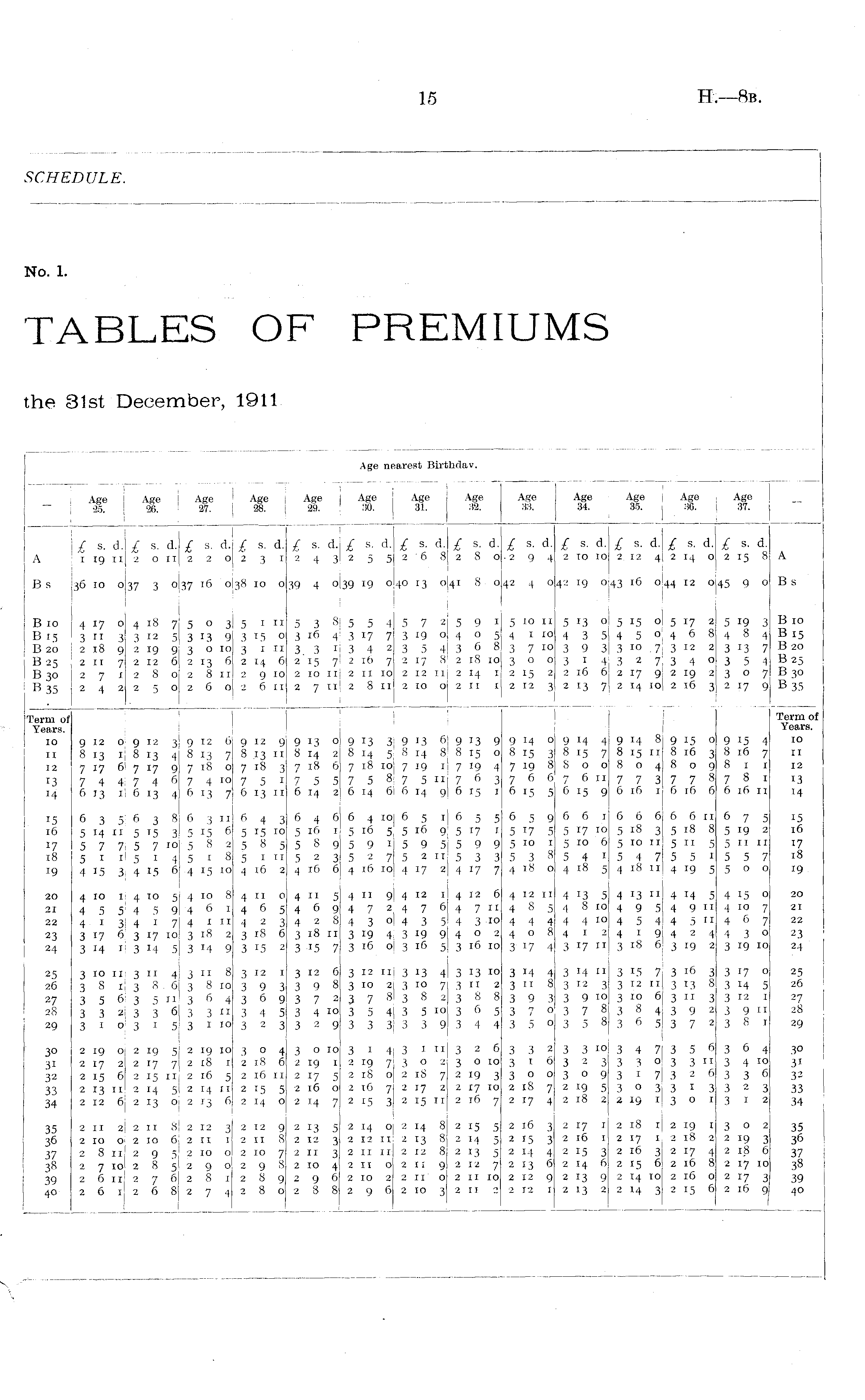 THE PUBLISHED TABLES OF PREMIUMS Which were in Use on the 31st December, 1911.