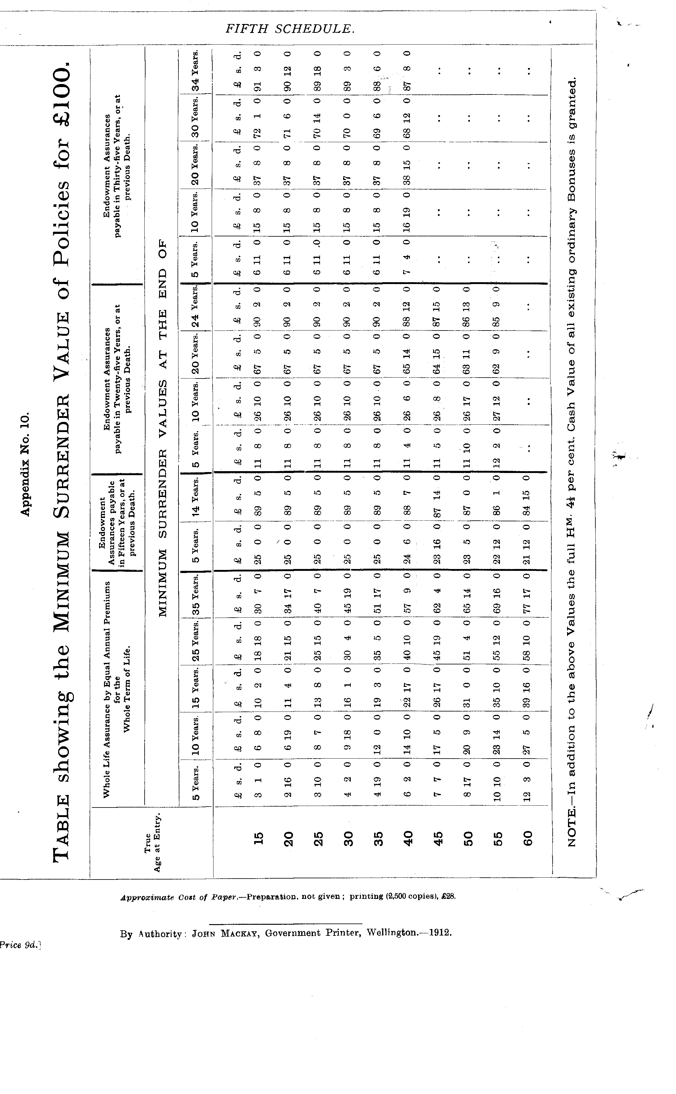 Appendix No. 10. Table showing the Minimum Surrender Value of Policies for £100.