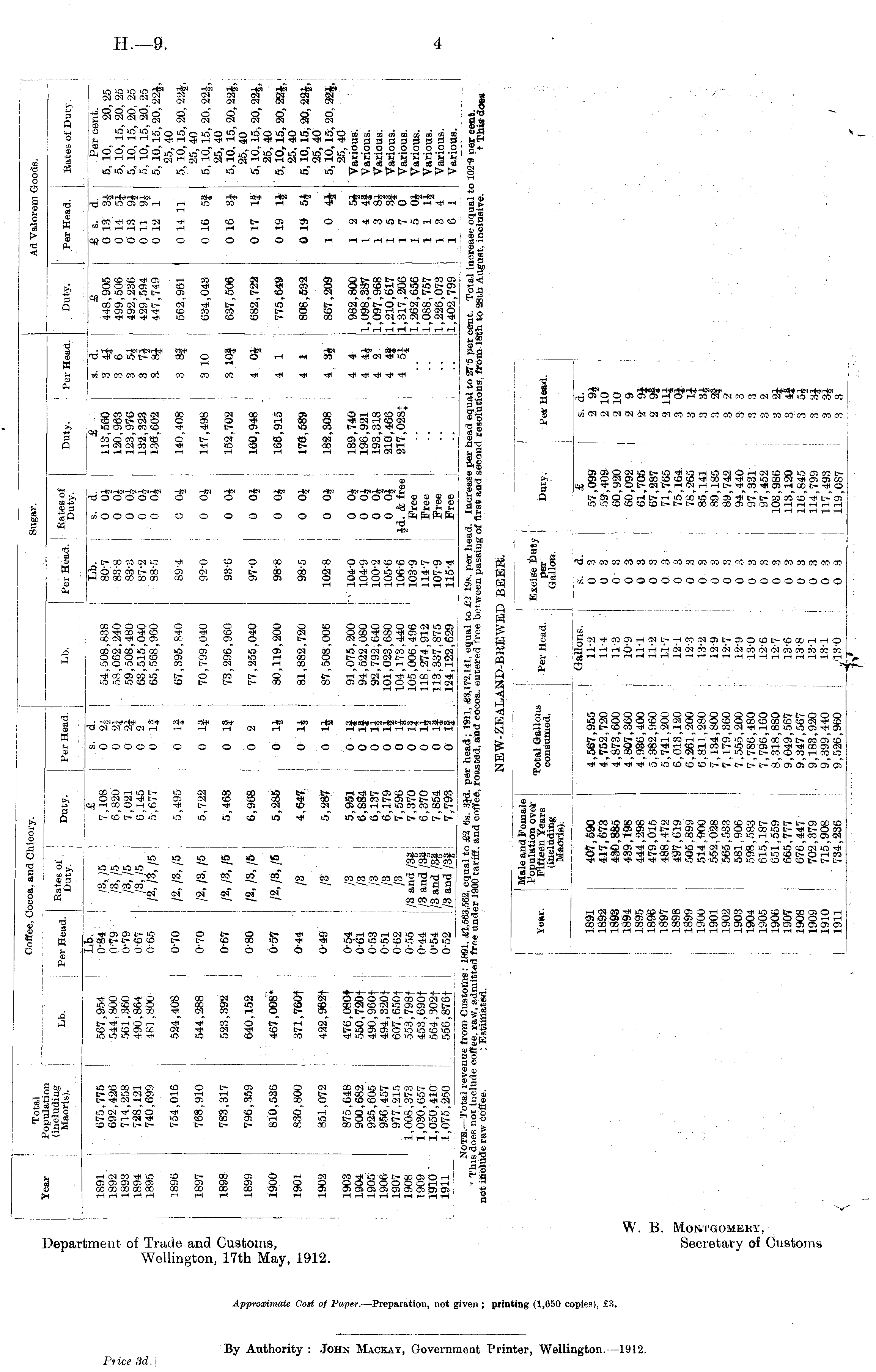 W. B. Mot-TGOMEKV, Department of Trade and Customs, Secretary of Customs Wellington, 17th May, 1912.