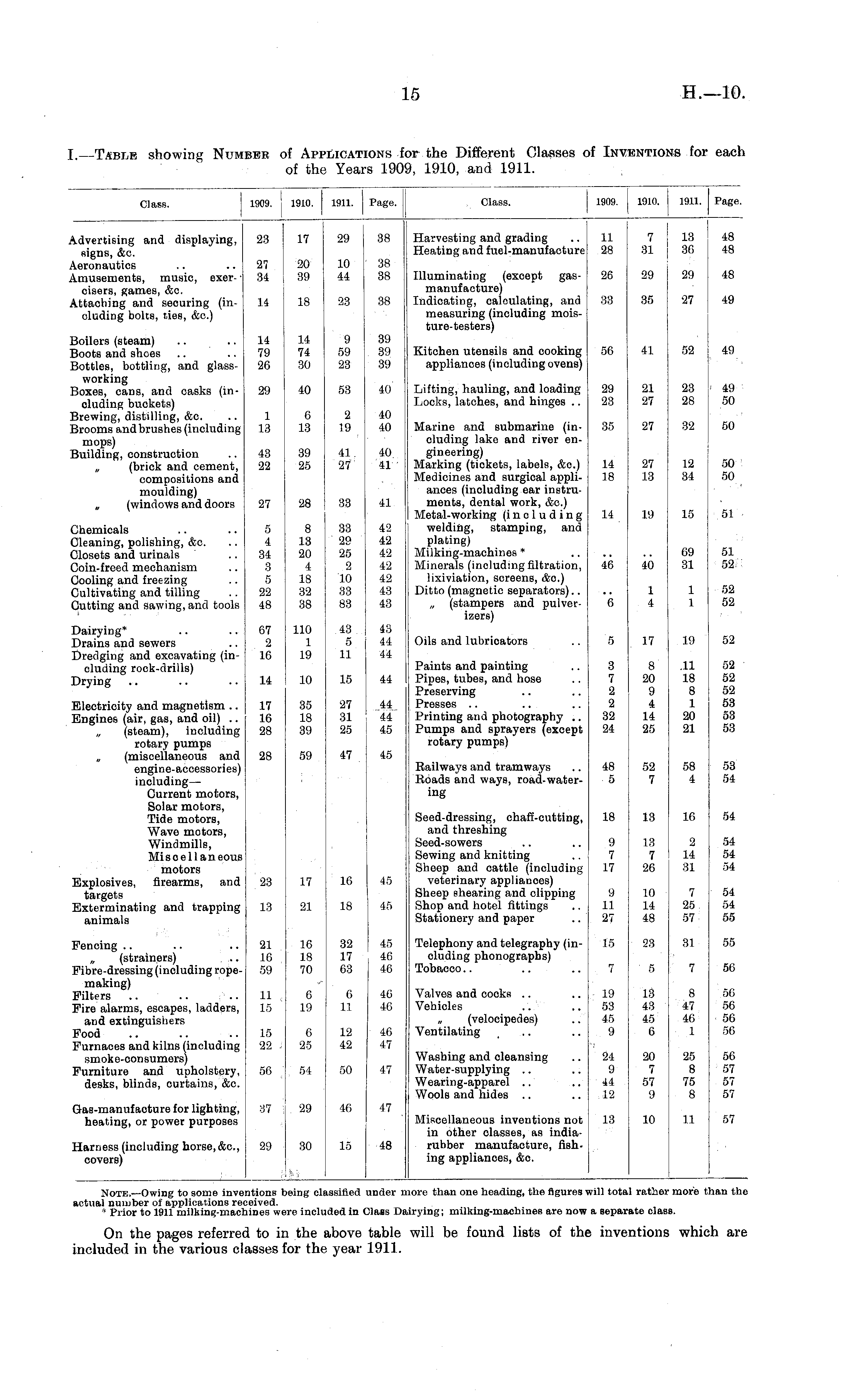 On the pages referred to in the above table will be found lists of the inventions which are included in the various classes for the year 1911.