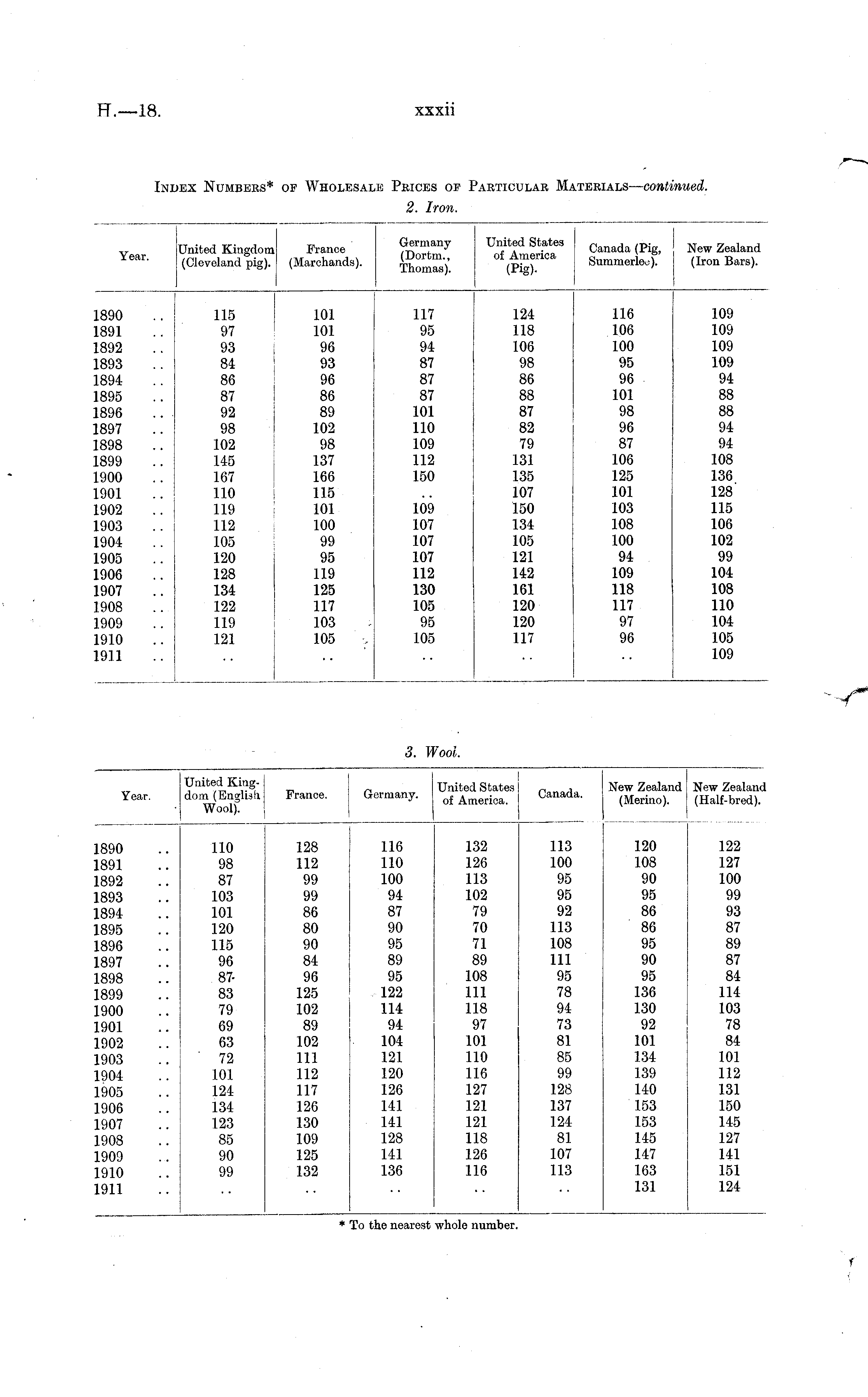 Index Numbers* of Wholesale Prices of Particular Materials — continued. 2. Iron.