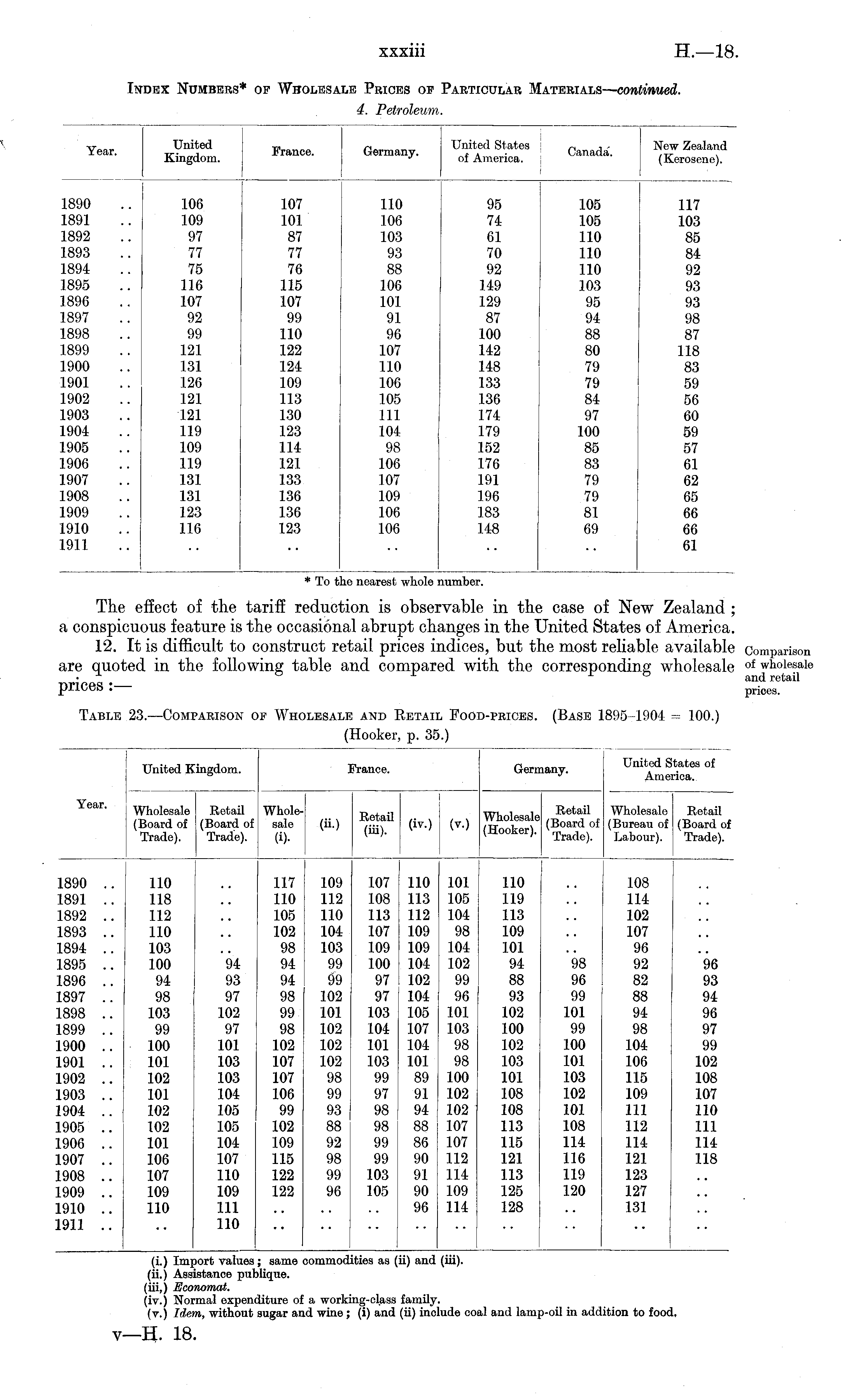 United K: igdom. France. Gen lany. United S Amei tates of ica. Year. Wholesale (Board of Trade). Retail (Board of Trade). Wholesale (i)(ii.) Retail (iii). (iv.) (V.) Wholesale (Hooker). Retail (Board of Trade). Wholesale (Bureau of Labour). Retail (Board of Trade). 1890 1891 1892 1893 1894 1895 1896 1897 1898 1899 1900 1901 1902 1903 1904 1905 1906 1907 1908 1909 1910 1911 110 118 112 110 103 100 94 98 103 99 100 101 102 101 102 102 101 106 107 109 110 94 93 97 102 97 101 103 103 104 105 105 104 107 110 109 111 110 117 110 105 102 98 94 94 98 99 98 102 107 107 106 99 102 109 115 122 122 109 112 110 104 103 99 99 102 101 102 102 102 98 99 93 88 92 98 99 96 107 108 113 107 109 100 97 97 103 104 101 103 99 97 98 98 99 99 103 105 110 113 112 109 109 104 102 104 105 107 104 101 89 91 94 88 86 90 91 90 96 101 105 104 98 104 102 99 96 101 103 98 98 100 102 102 107 107 112 114 109 114 110 119 113 109 101 94 88 93 102 100 102 103 101 108 108 113 115 121 113 125 128 98 96 99 101 99 100 101 103 102 101 108 114 116 119 120 108 114 102 107 96 92 82 88 94 98 104 106 115 109 111 112 114 121 123 127 131 96 93 94 96 97 99 102 108 107 110 111 114 118