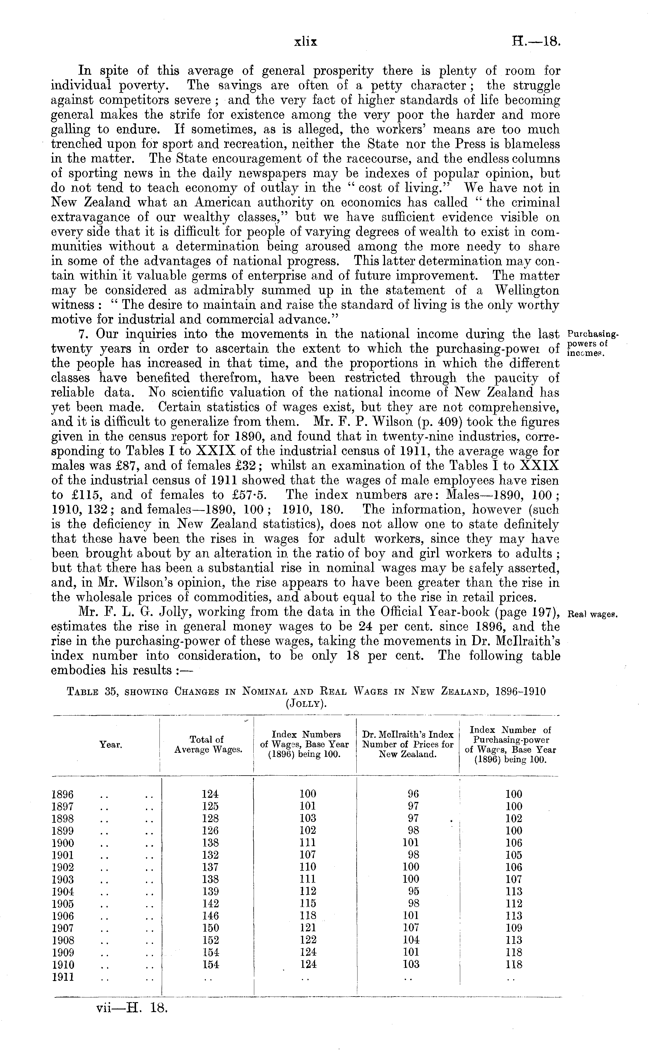 Table 35, showing Changes in Nominal and Real Wages in New Zealand, 1896-1910 (Jolly).