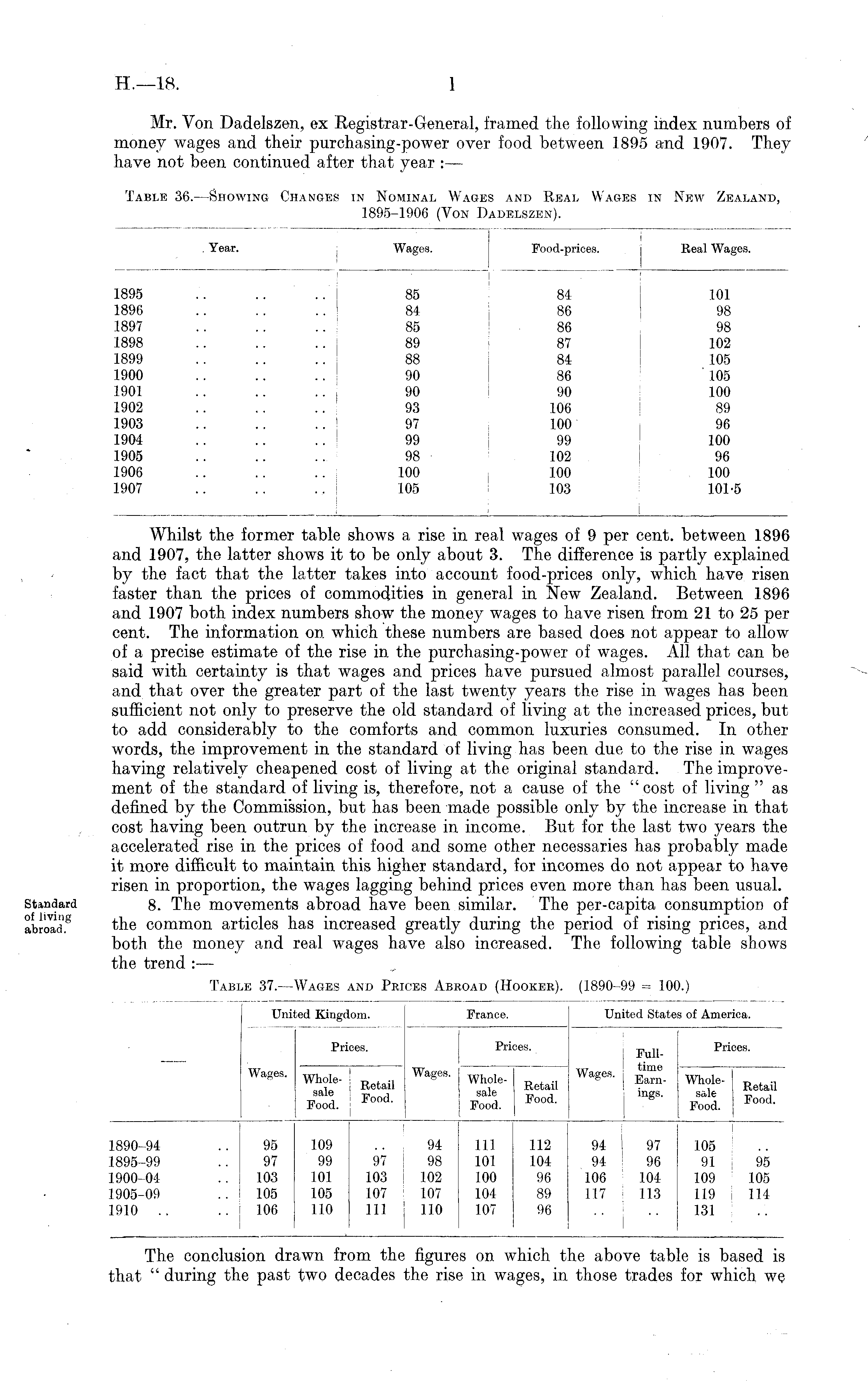 Table 36. —Showing Changes in Nominal Wages and Real Wages in New Zealand, 1895-1906 (Von Dadelszen).